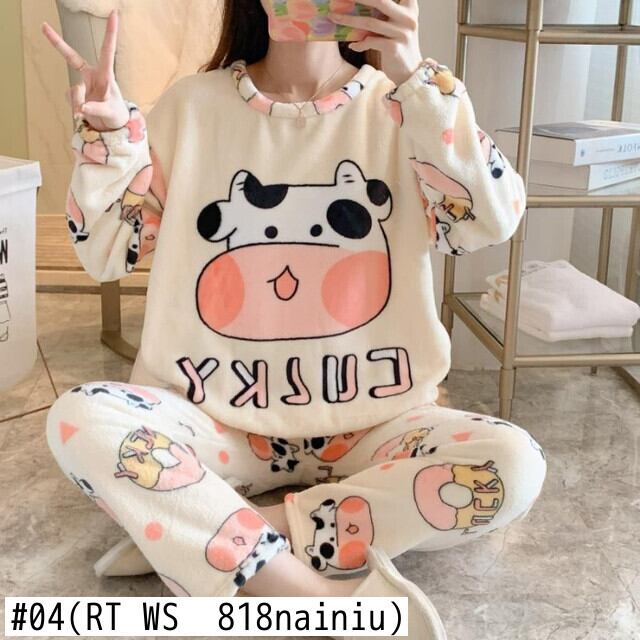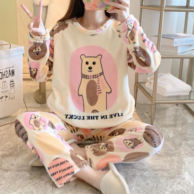 冬フランネルパジャマセット韓国漫画かわいいホームウェア学生スパースターパジャマ暖かいコーラルベルベットランジェリー 大人ガーリー ウィンター 冬物