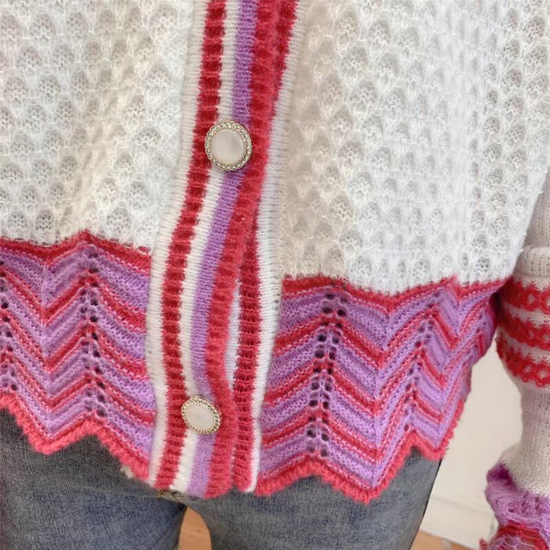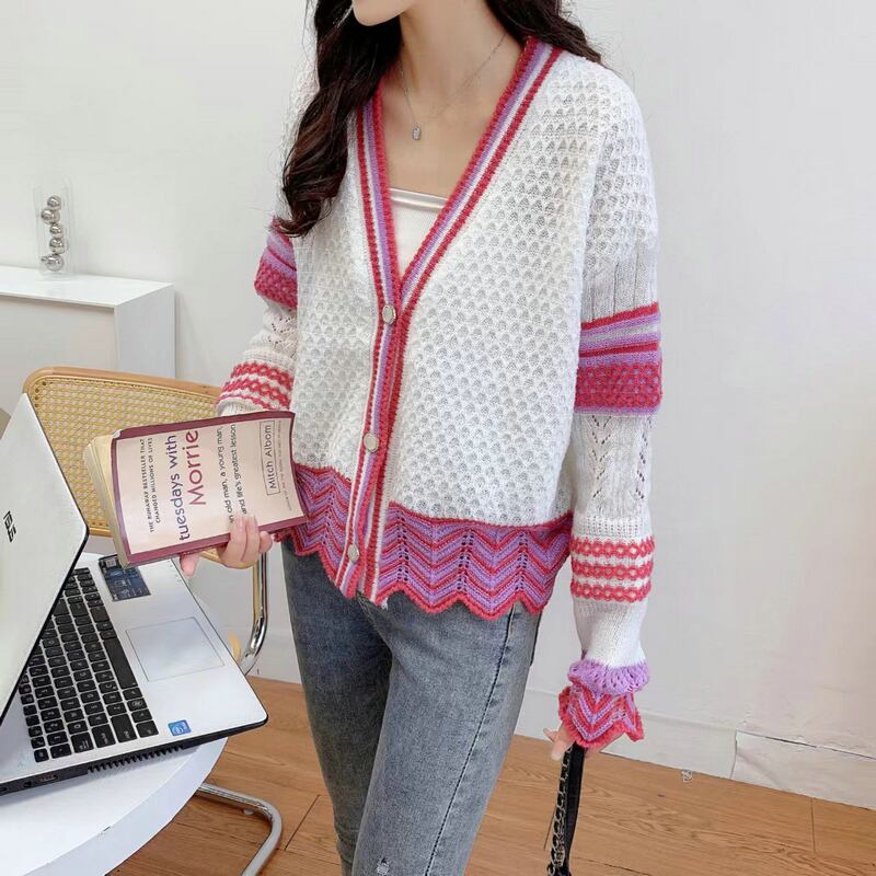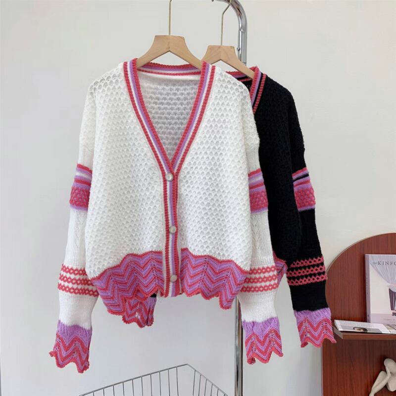 秋セーターコートカラーステッチニットカーディガンジャケット韓国シンプルルーズカジュアルトップスカーディガンセーター オータム 秋物