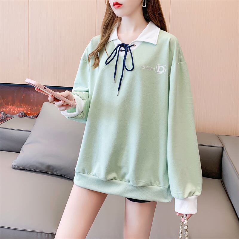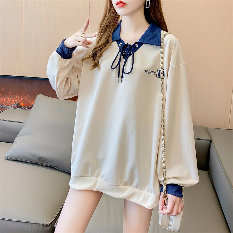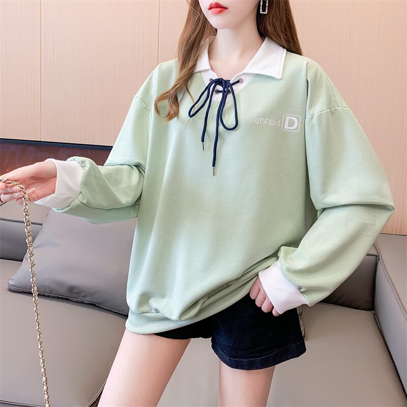 プレッピースタイル Tシャツポロ襟長袖トップ原宿レターストリートトップス特大 Tシャツストリート ロング かわいい