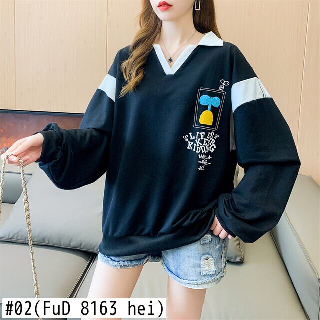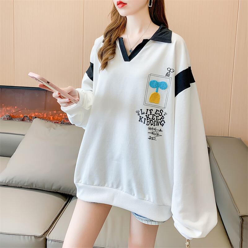 プレッピースタイル手紙薄いスウェット秋特大長袖カラーステッチパーカープルオーバー学生服 ロング シャツ オータム 秋物