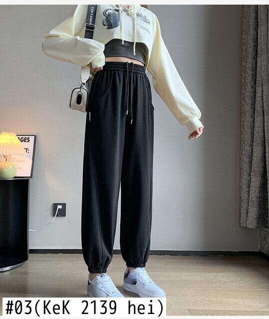 春ストリートヒップホップスウェットパンツ秋ルーズスポーツハーレムパンツ文字刺繍黒ズボン ブラック スプリング 春物 オータム 秋物