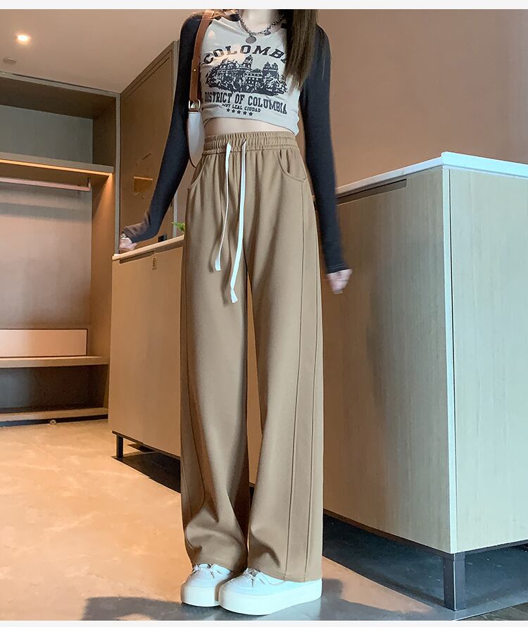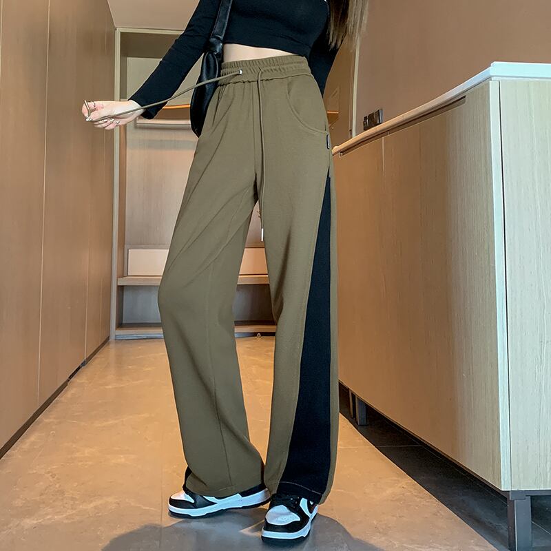 黒 y2k ワイドレッグパンツ原宿カラーステッチスウェットパンツ弾性ウエスト韓国だぶだぶルーズカジュアルパンツ ブラック エラスティック 伸縮 かわいい ワイドパンツ