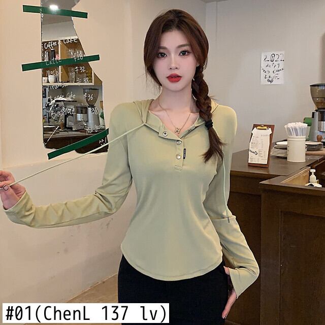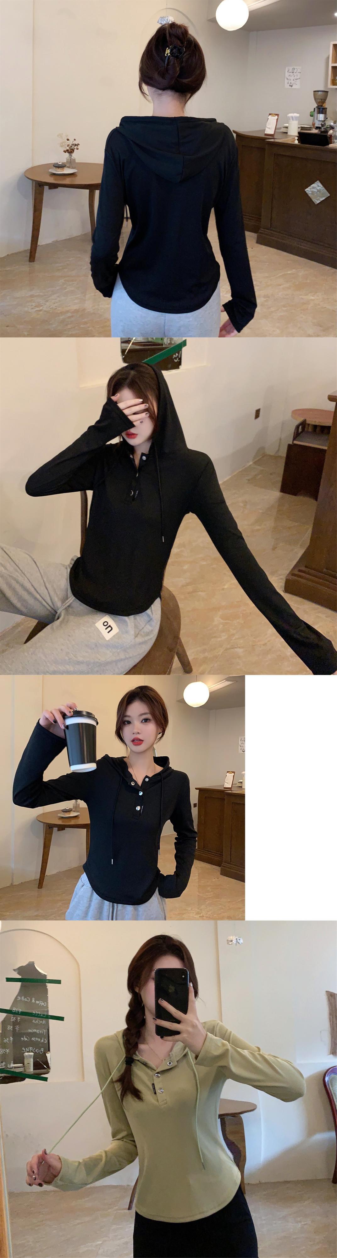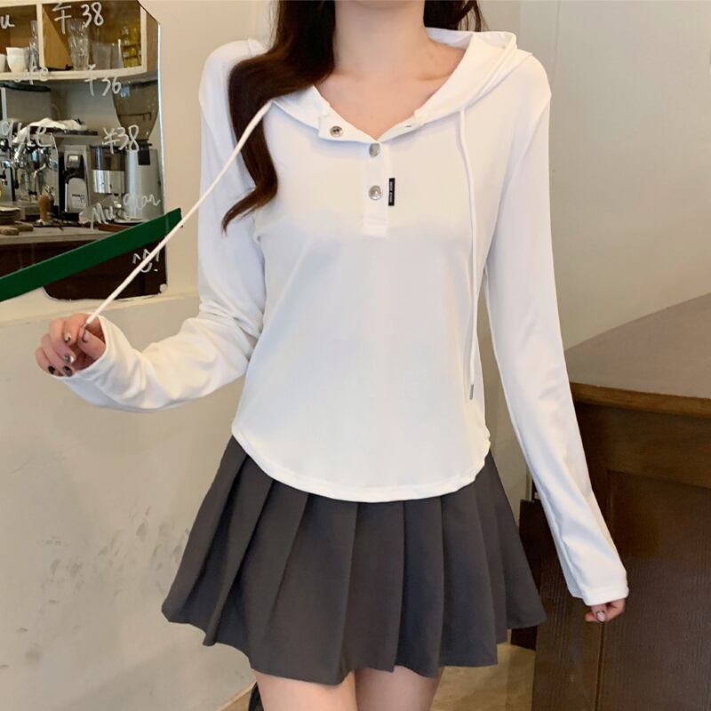 原宿ルーズボタンソフトフード付き Tシャツ若い春秋長袖 Tシャツ服 y2k トップス ロング かわいい スプリング 春物 オータム 秋物 ソリッドカラー