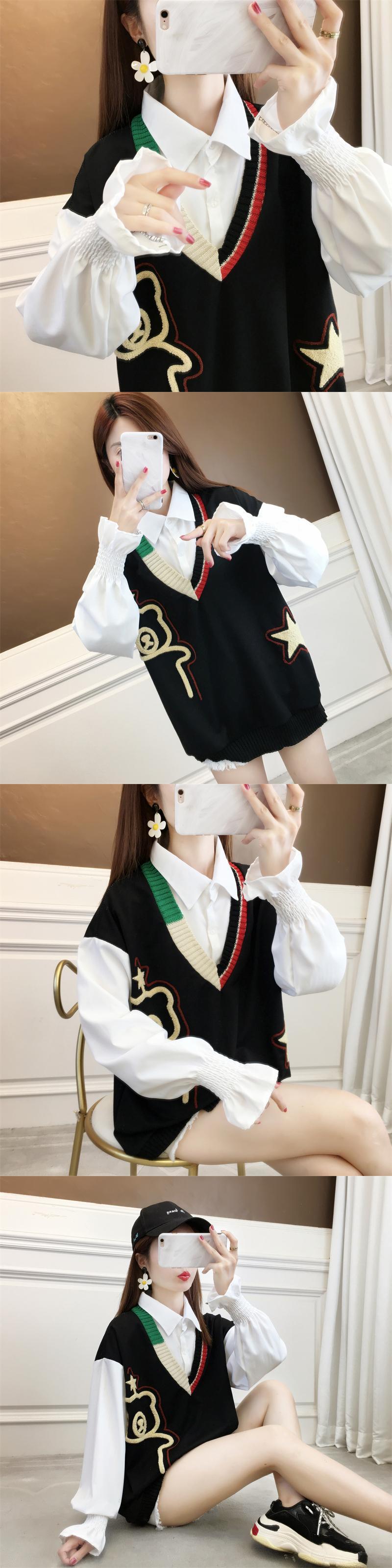 ブラウスパッチワークフェイクツーピースパーカーカジュアル特大長袖 y2k プルオーバー秋プレッピースタイルトレーナー ロング オータム 秋物
