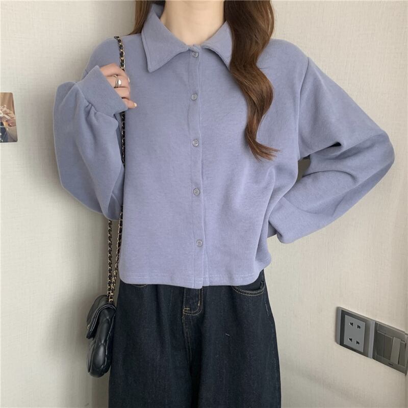 原宿無地シングルブレスト O ネックパーカー長袖ルーズトレーナーカーディガンジャケット y2k 服カジュアルパーカー ロング かわいい Oネック ソリッドカラー