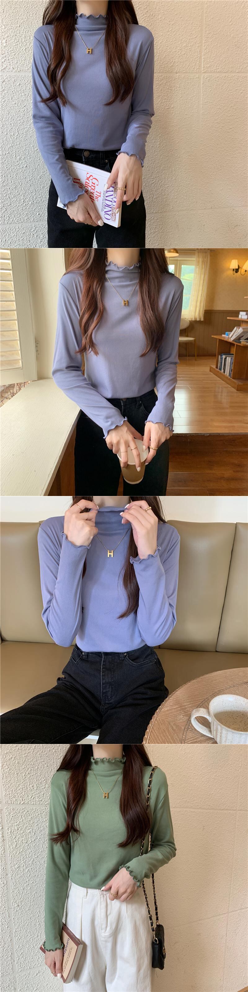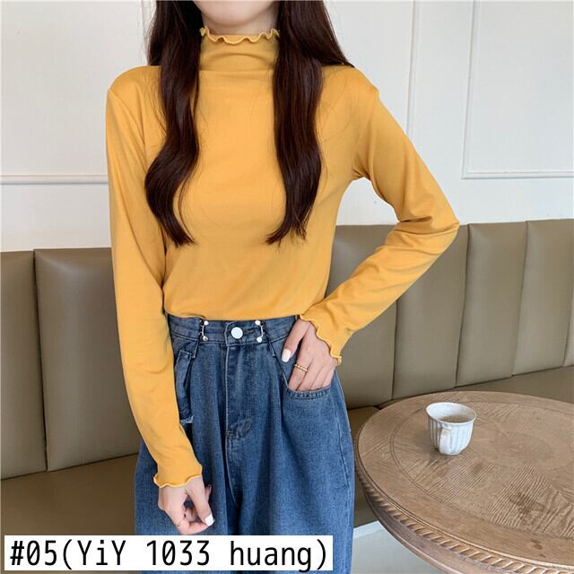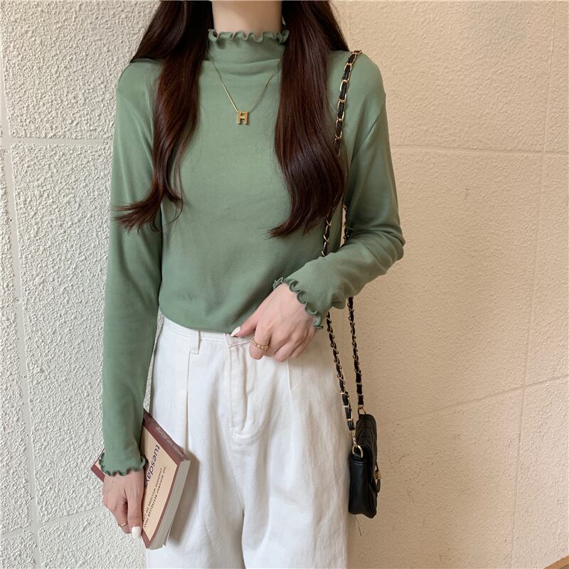 秋冬厚み Tシャツ原宿スリムタートルネック tシャツ長袖底入れ Tシャツトップ服 ロング かわいい オータム 秋物 ウィンター 冬物 ソリッドカラー