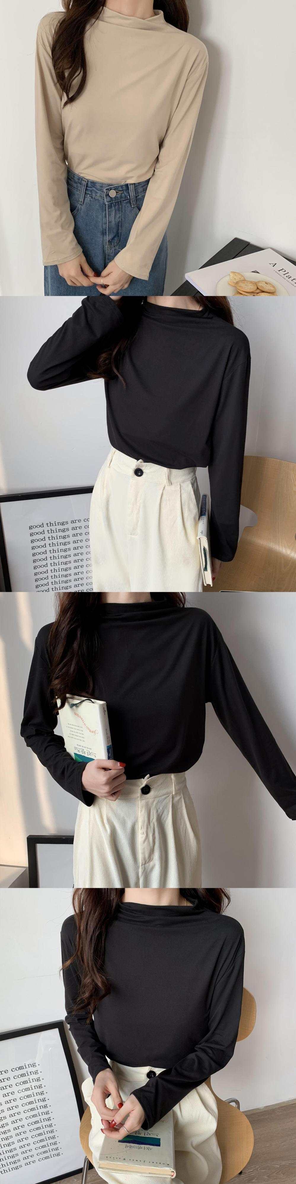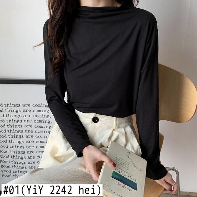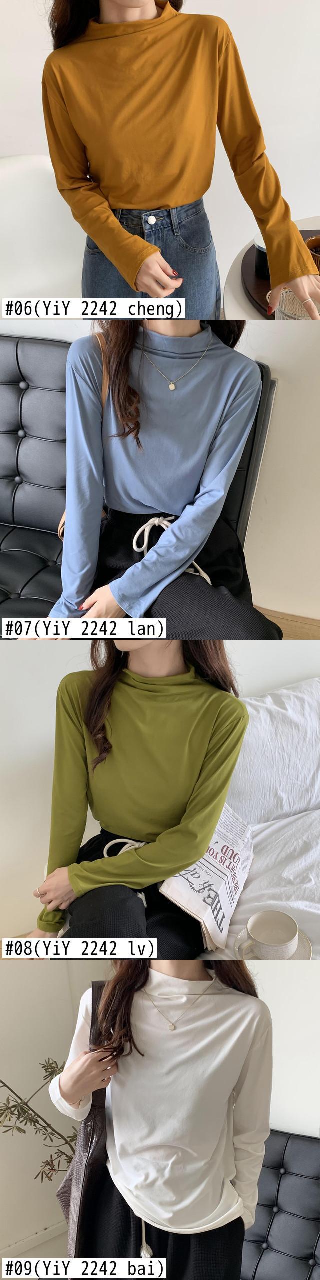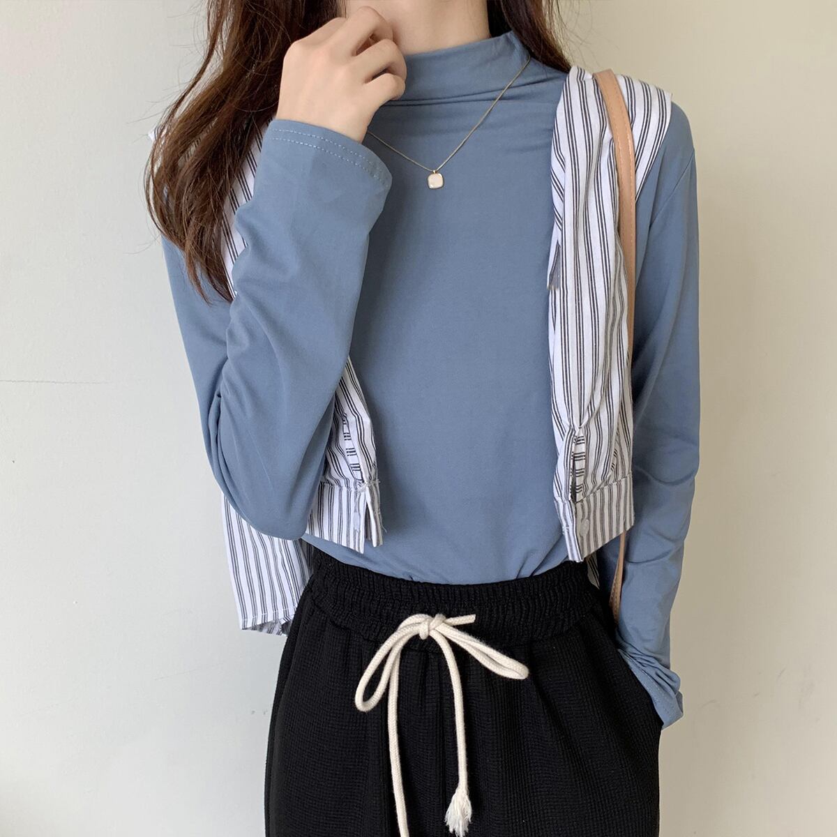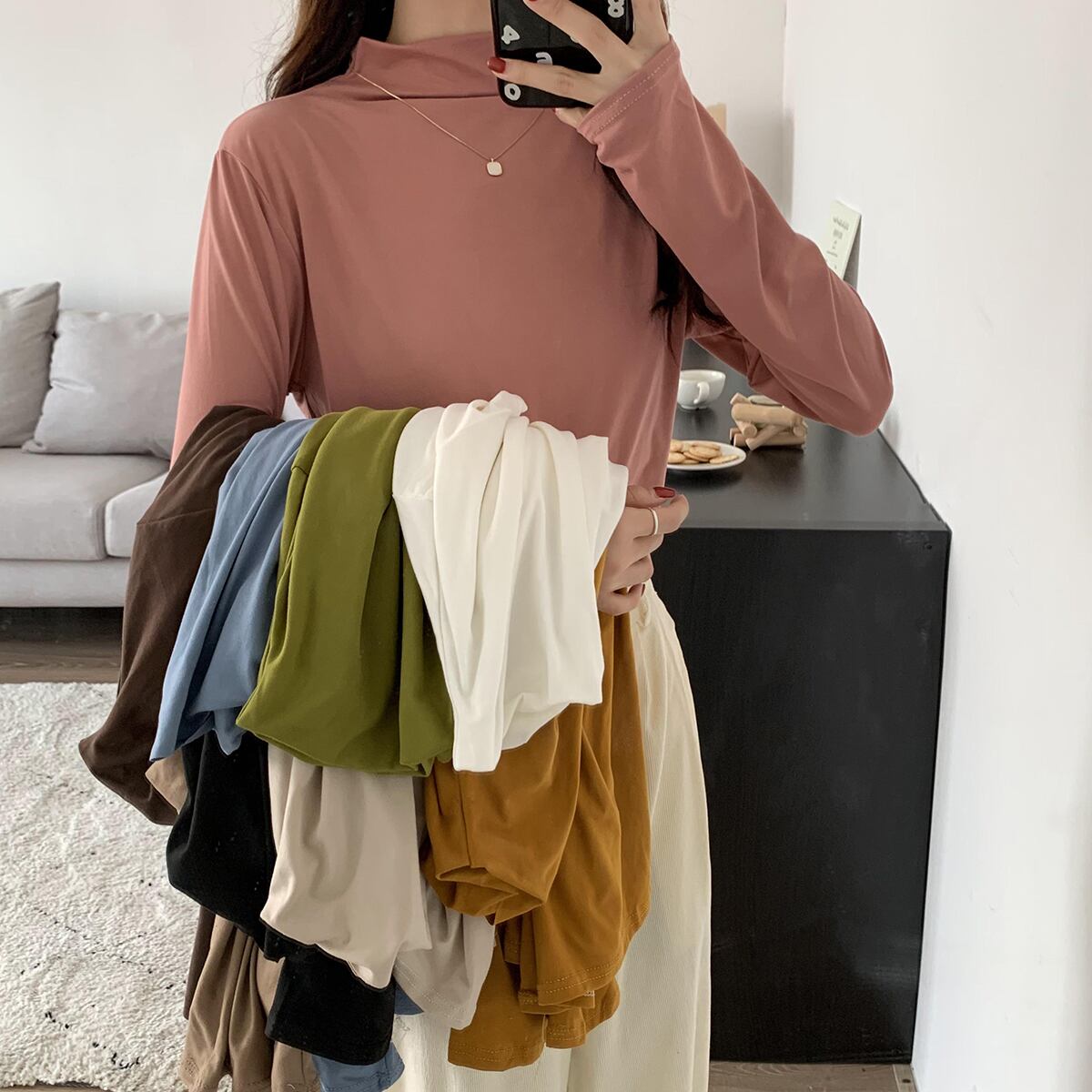 春秋長袖 Tシャツ原宿スリムハーフタートルネック弾性トップ Tシャツガールボトミング tシャツ ロング エラスティック 伸縮 かわいい スプリング 春物 オータム 秋物 ソリッドカラー