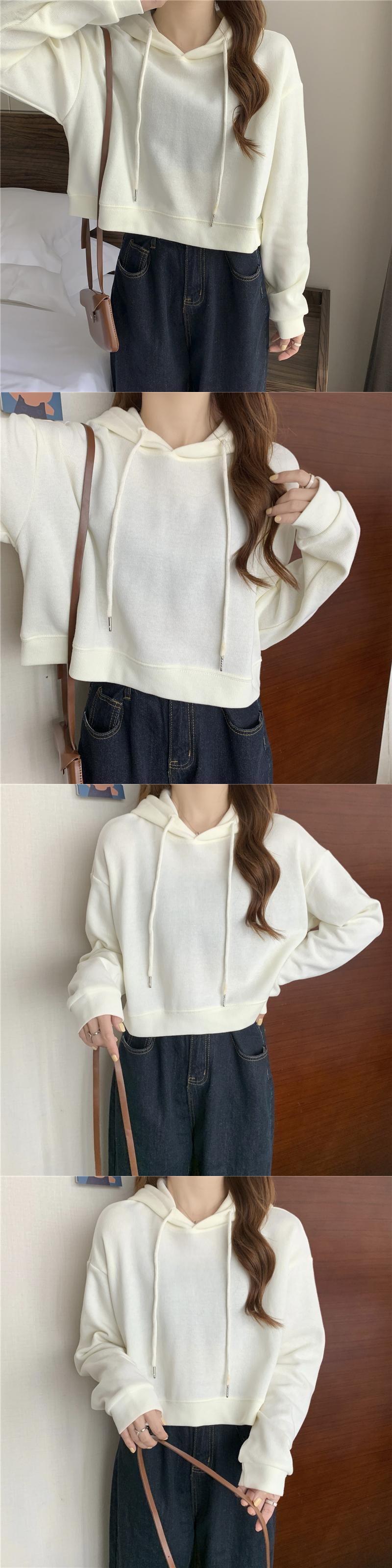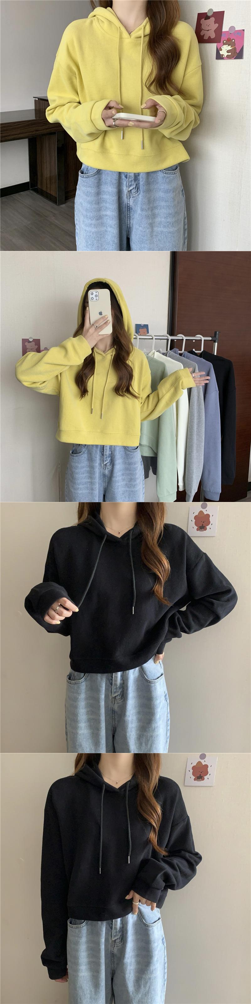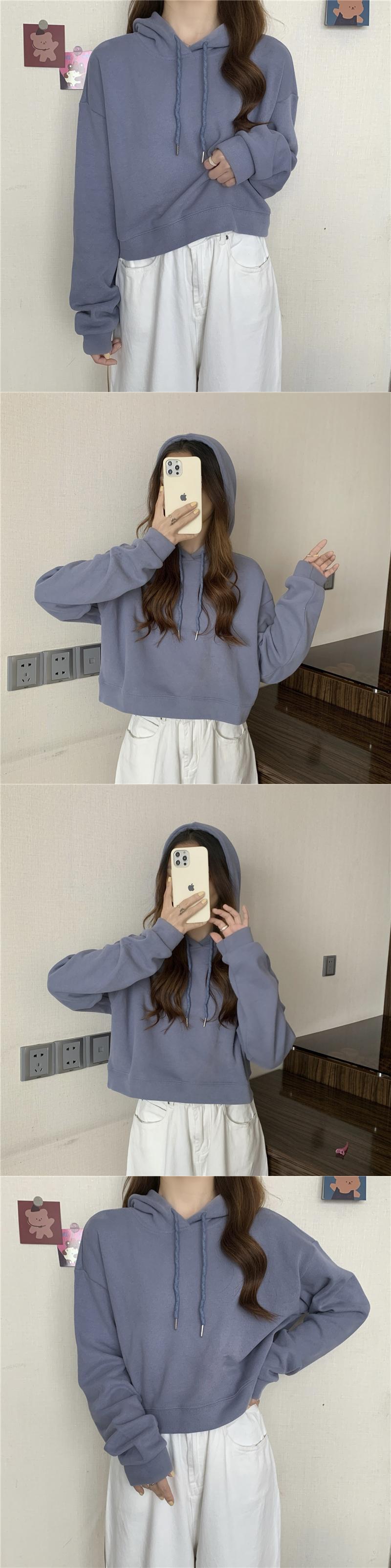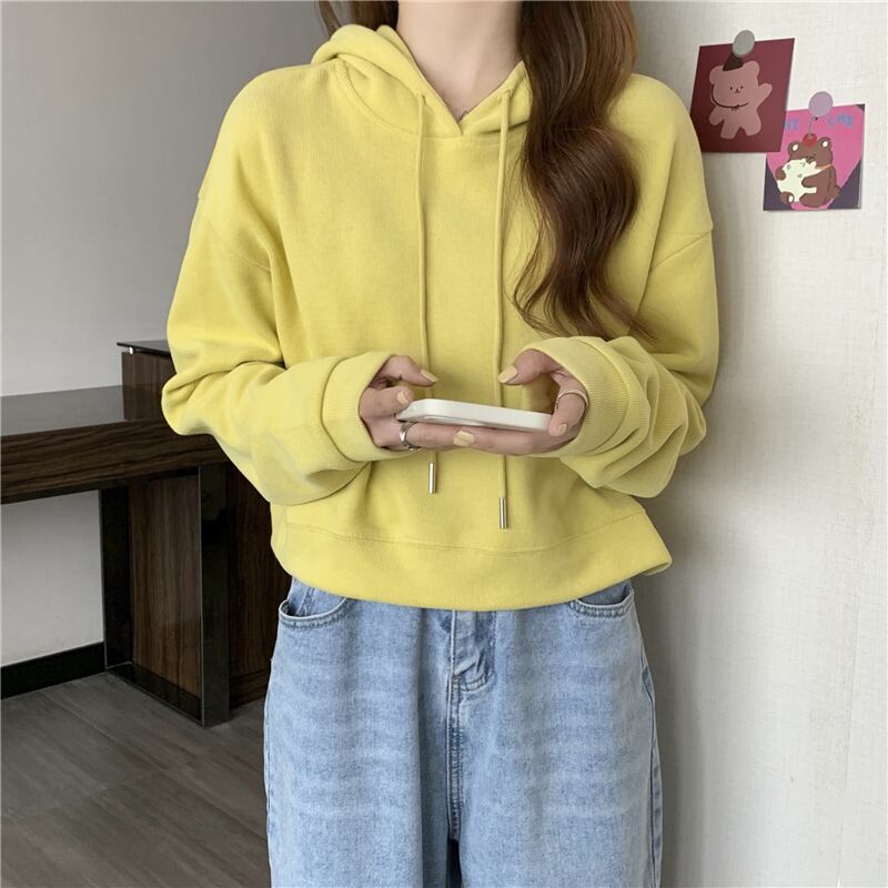 秋クロップトップパーカー綿 Kpop 薄いフード付きスウェットシャツ少女ストリート Sudadera かわいい服 コットン 大人ガーリー オータム 秋物 ソリッドカラー