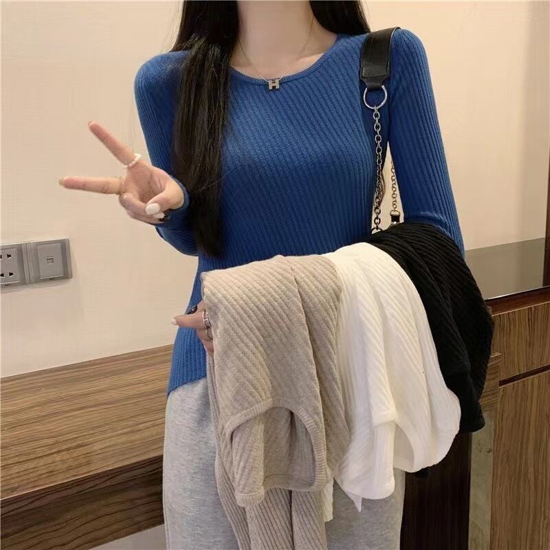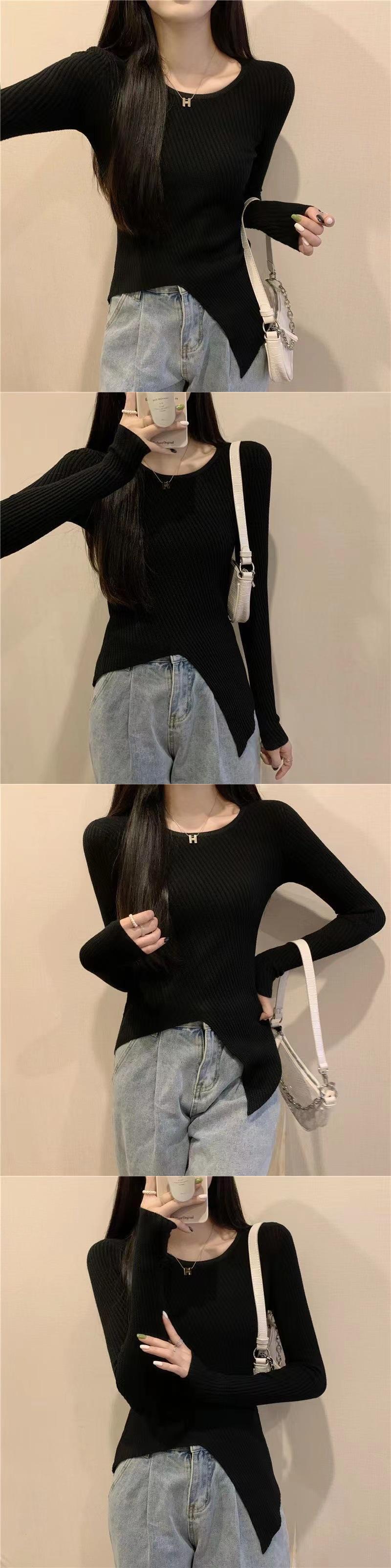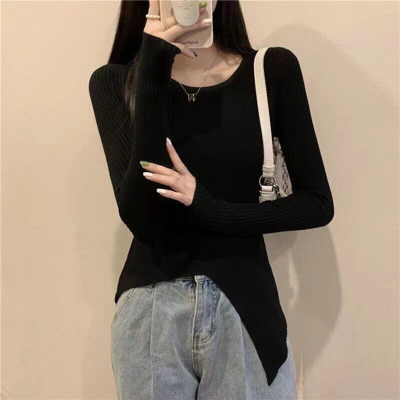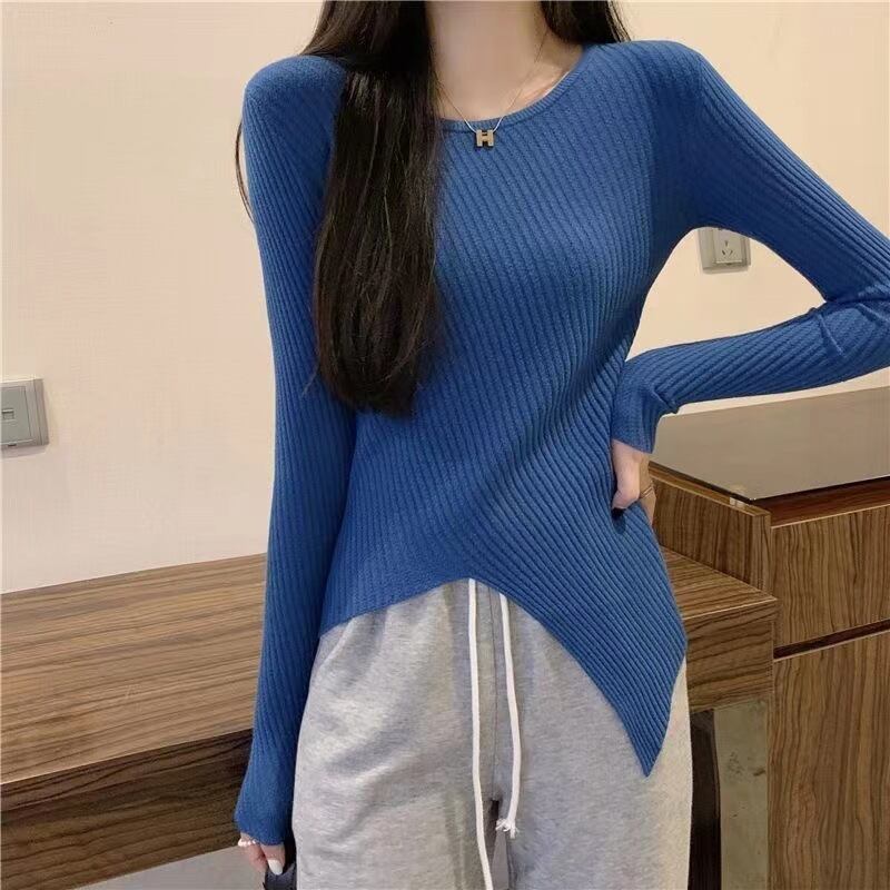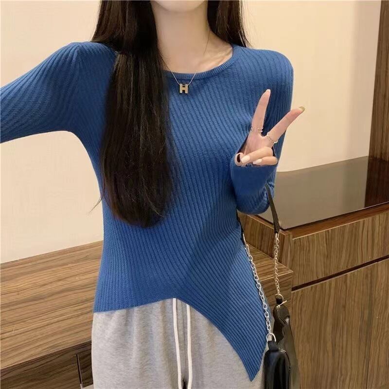 韓国セーター春秋 O ネックニット長袖スリム不規則セータープルオーバージャンパーニット底シャツ ロング スプリング 春物 オータム 秋物 Oネック