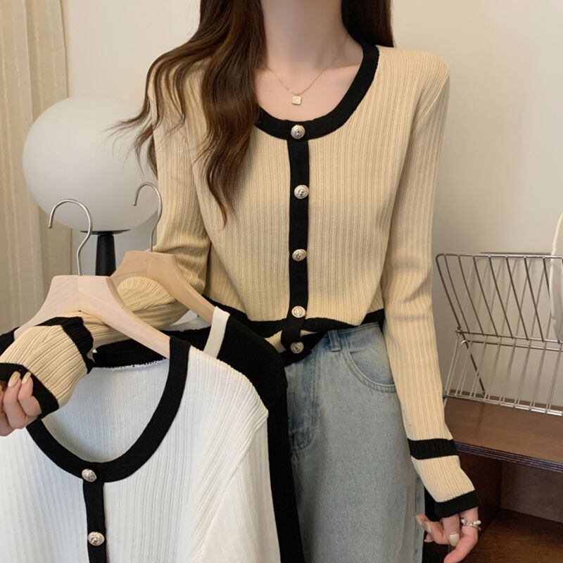 春秋ニットセーターオールマッチ長袖ボタンカーディガンセーター Tシャツジャンパートップス服 ロング スプリング 春物 オータム 秋物