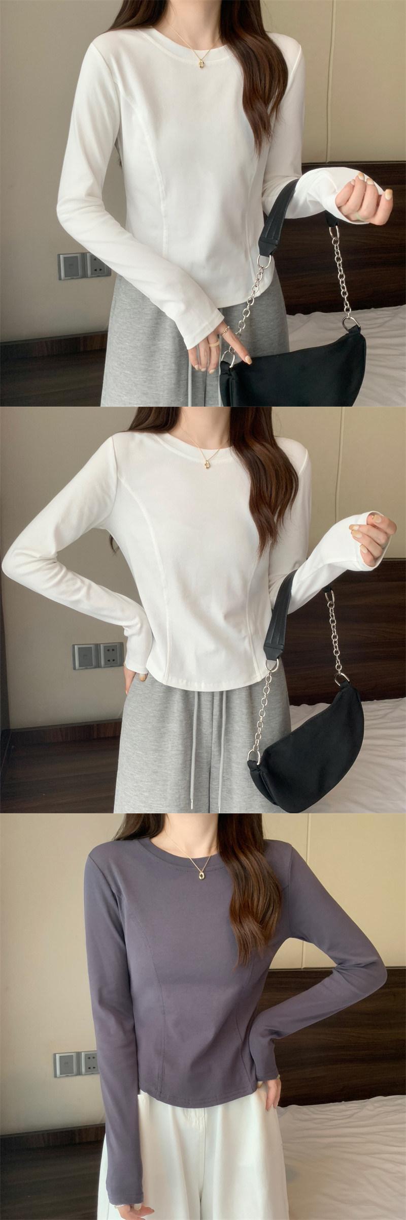 春若いクロップトップ秋不規則長袖 Tシャツ原宿スリムオールマッチ Tシャツ服 ロング かわいい スプリング 春物 オータム 秋物