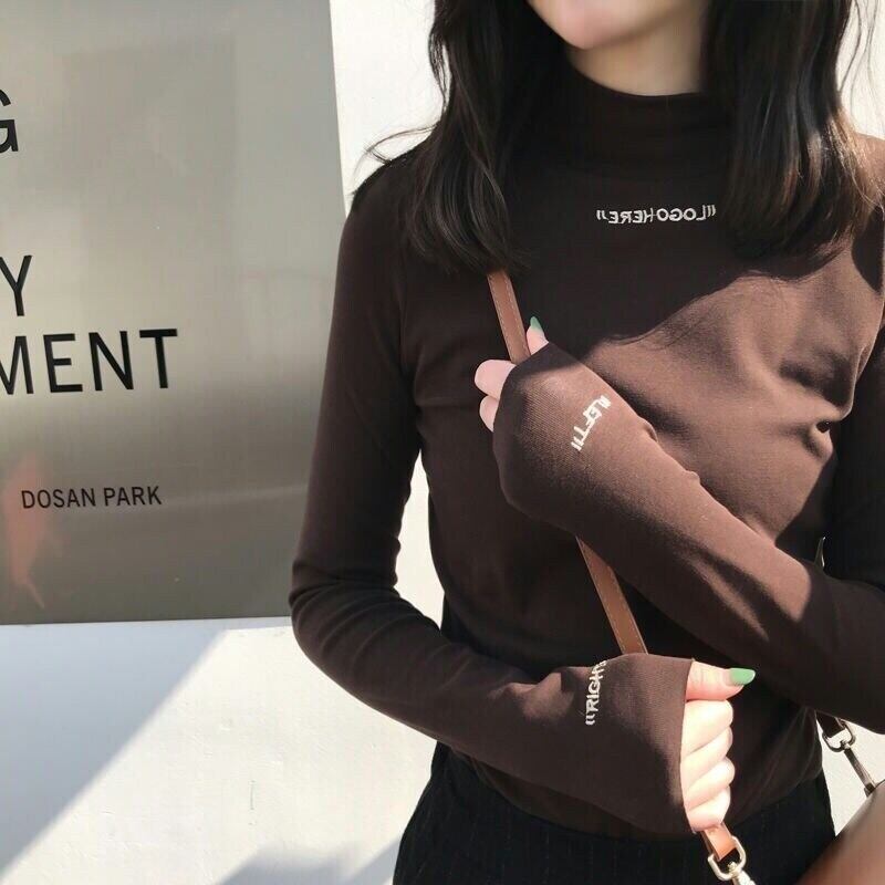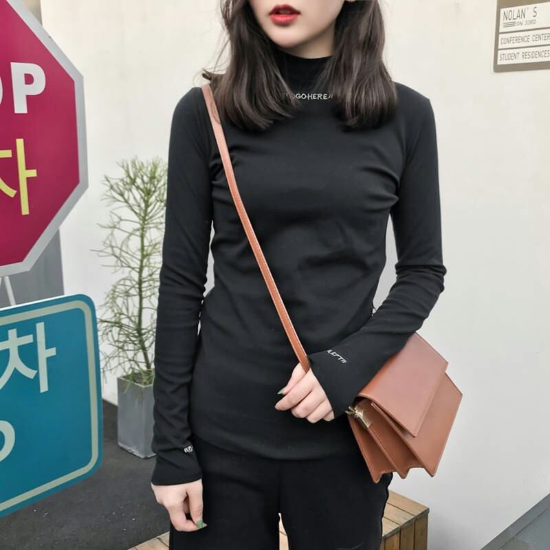 韓国長袖文字刺繍タートルネックスリム底 Tシャツ秋冬ベルベット Tシャツ厚く暖かいトップス ロング オータム 秋物 ウィンター 冬物