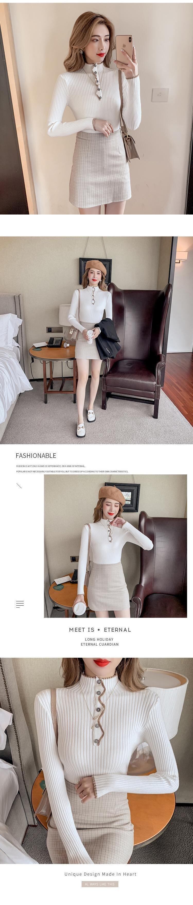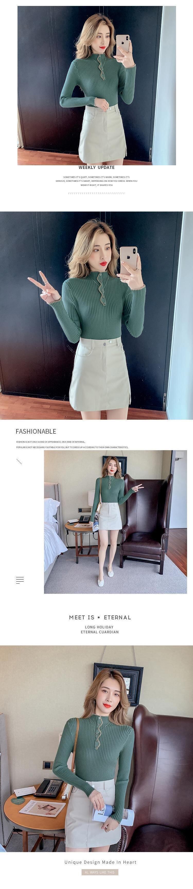 秋冬セーターハーフタートルネックグリーンセータープルオーバーカジュアルスリムニット底ジャンパーボタントップス オータム 秋物 ウィンター 冬物 ソリッドカラー