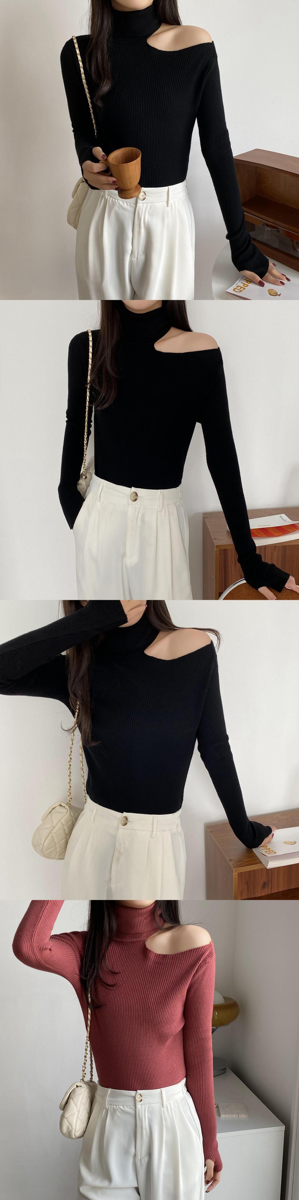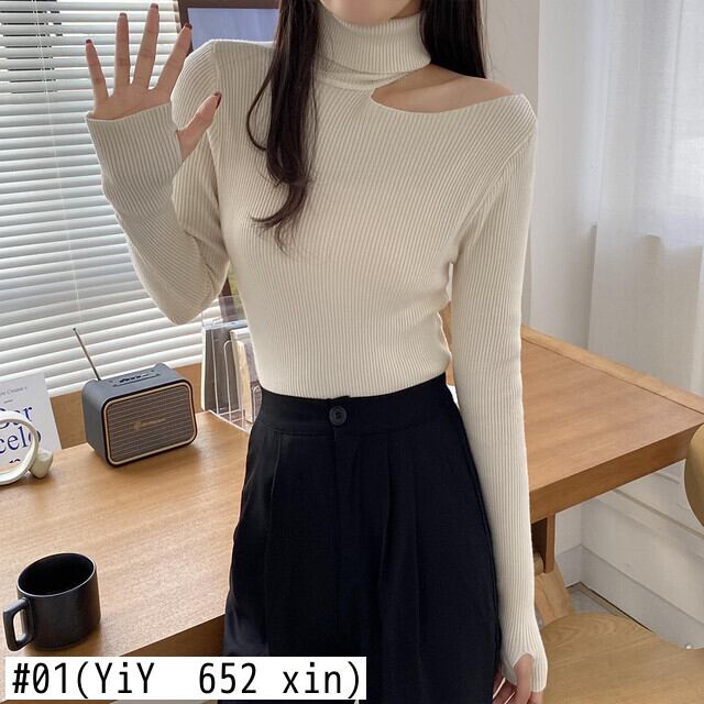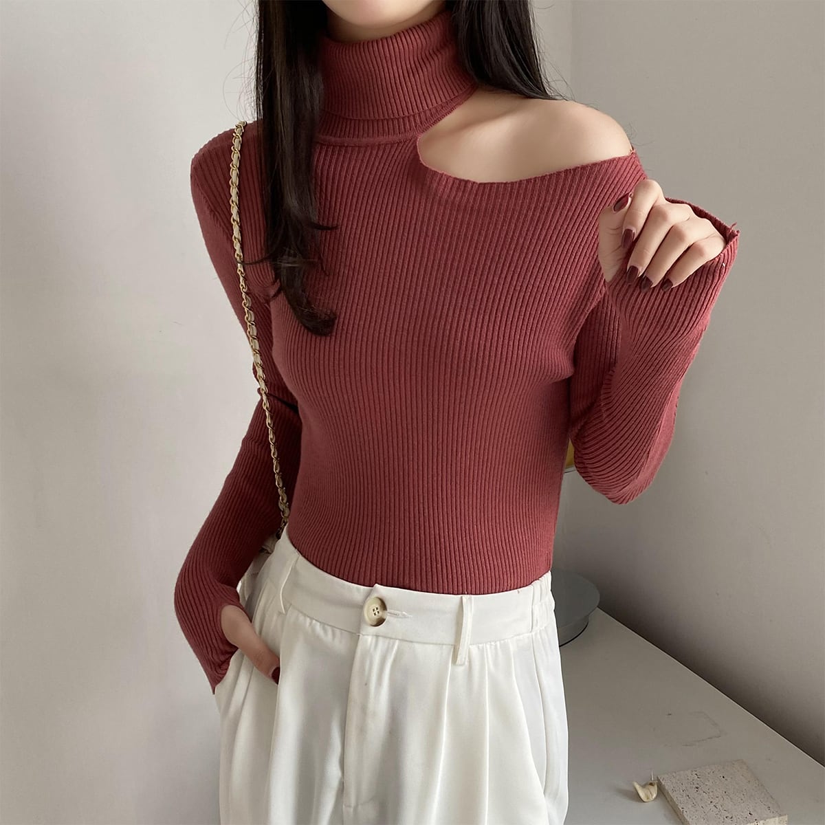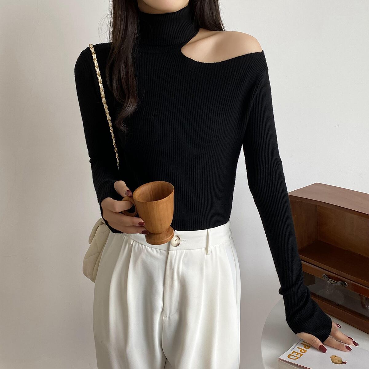 韓国セクシー中空アウトニットセータープルオーバータートルネック秋基本的セーターカジュアルスリムソフトトップスジャンパー オータム 秋物 ソリッドカラー