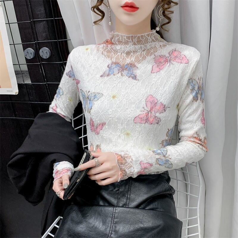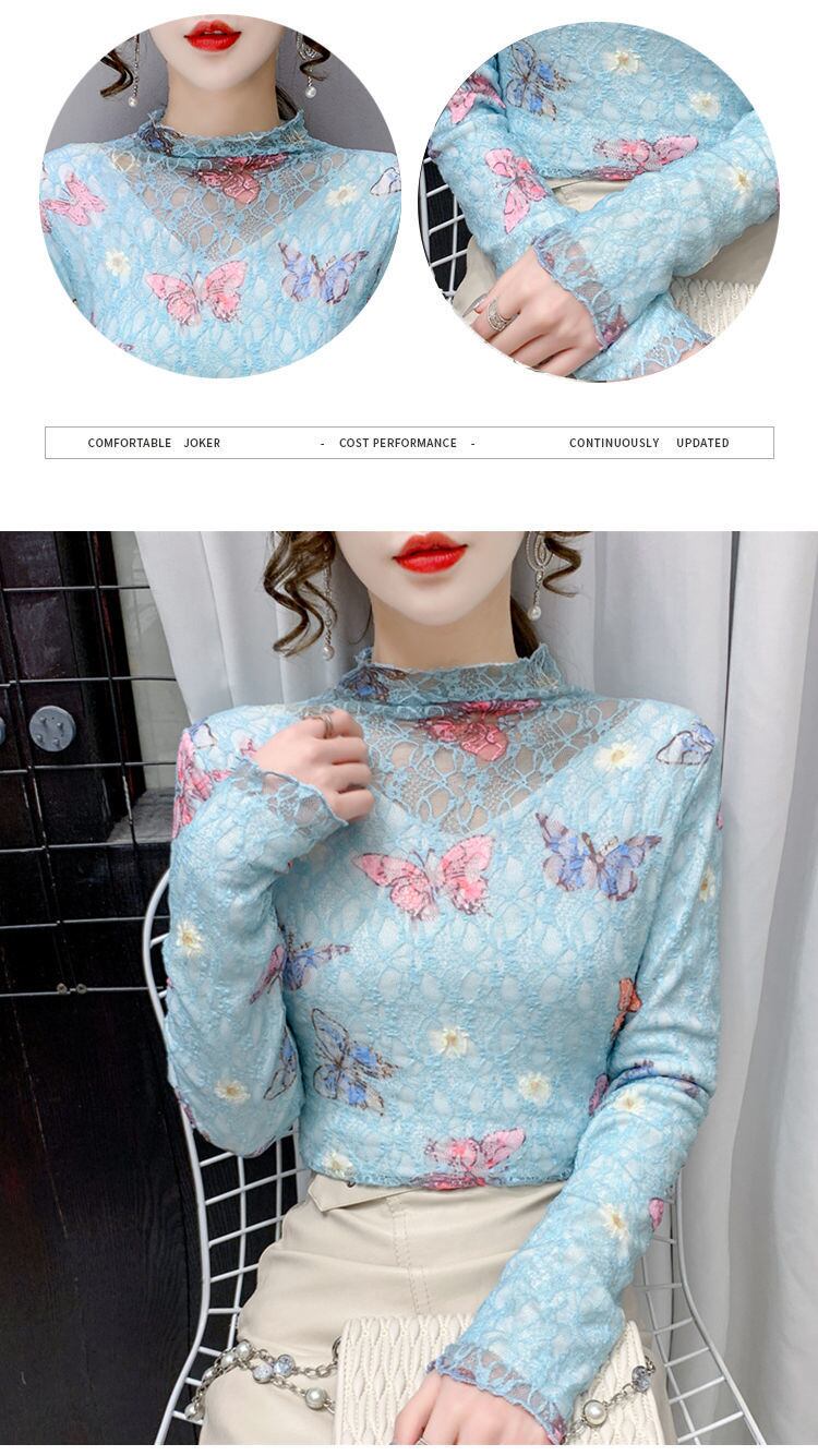 韓国長袖セクシーレースシャツフリースタートルネックスリム底 Tシャツ秋冬 Tシャツ厚く暖かいトップス ロング オータム 秋物 ウィンター 冬物