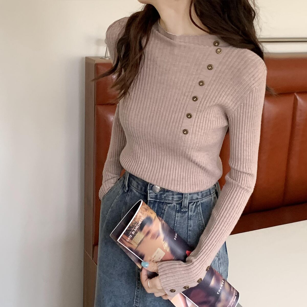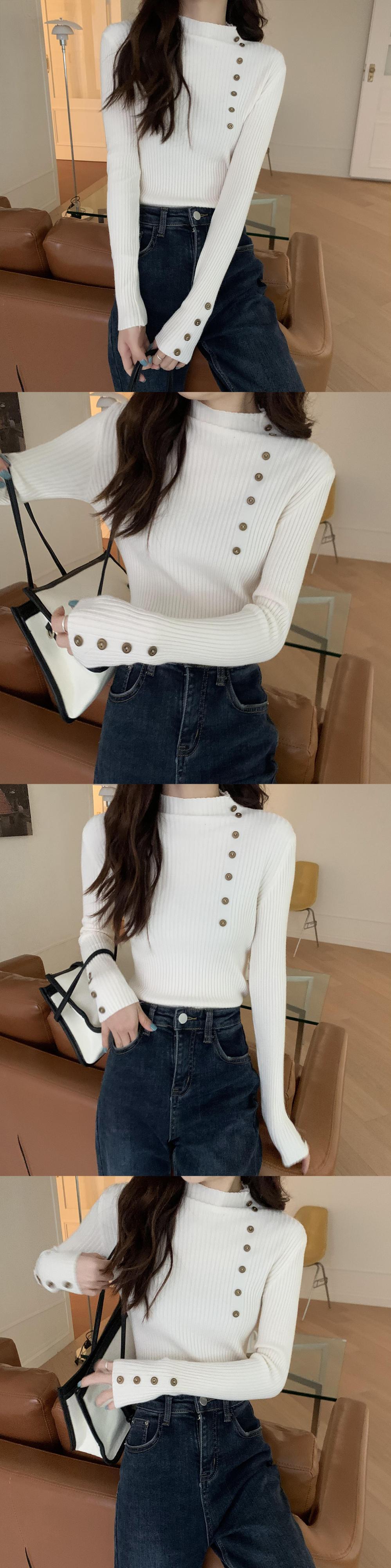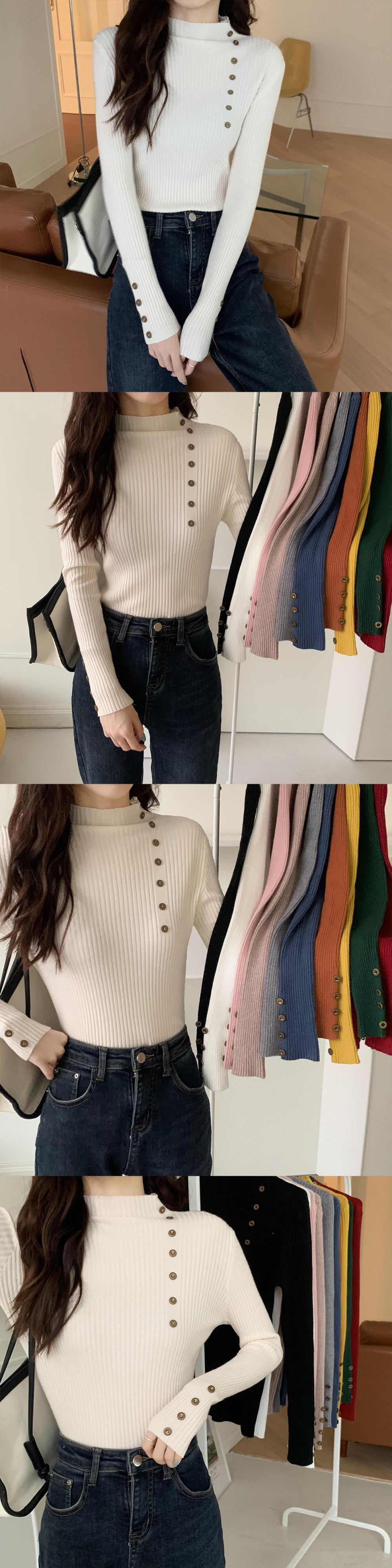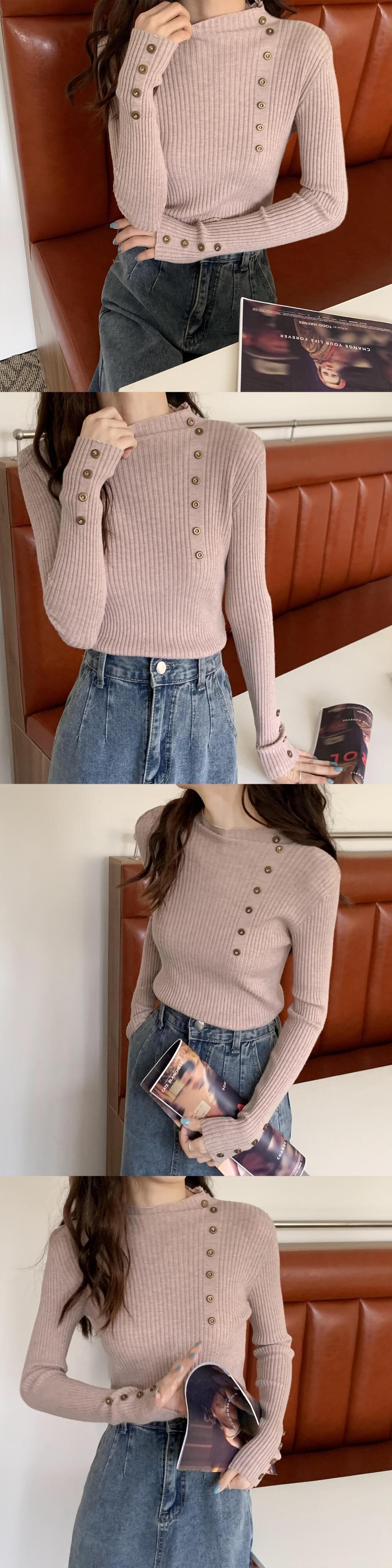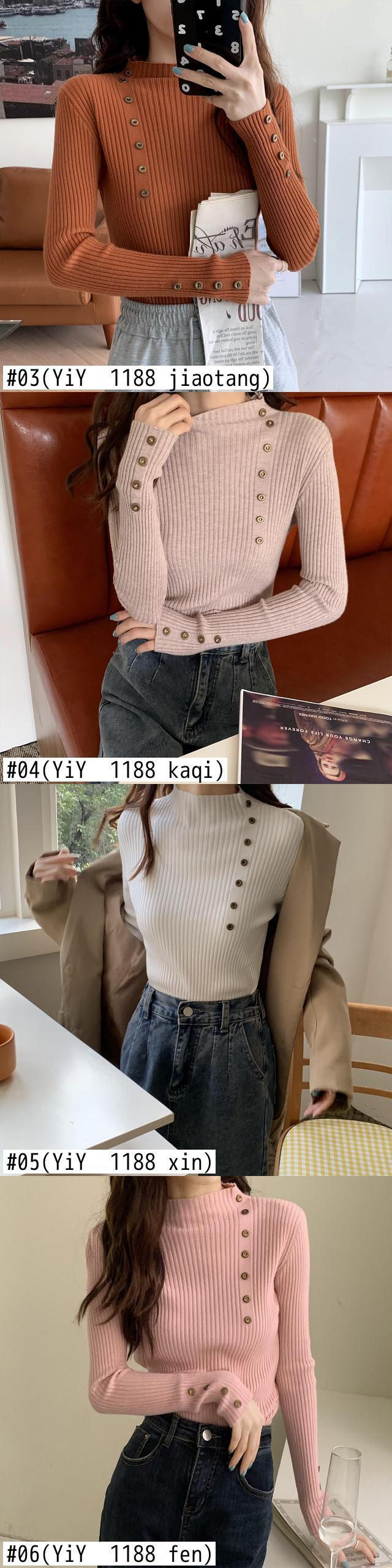 秋薄いセータープルオーバーピンクカジュアルスリムボタンハーフタートルネックシックセーター弾性ニットソフトジャンパートップス エラスティック 伸縮 オータム 秋物