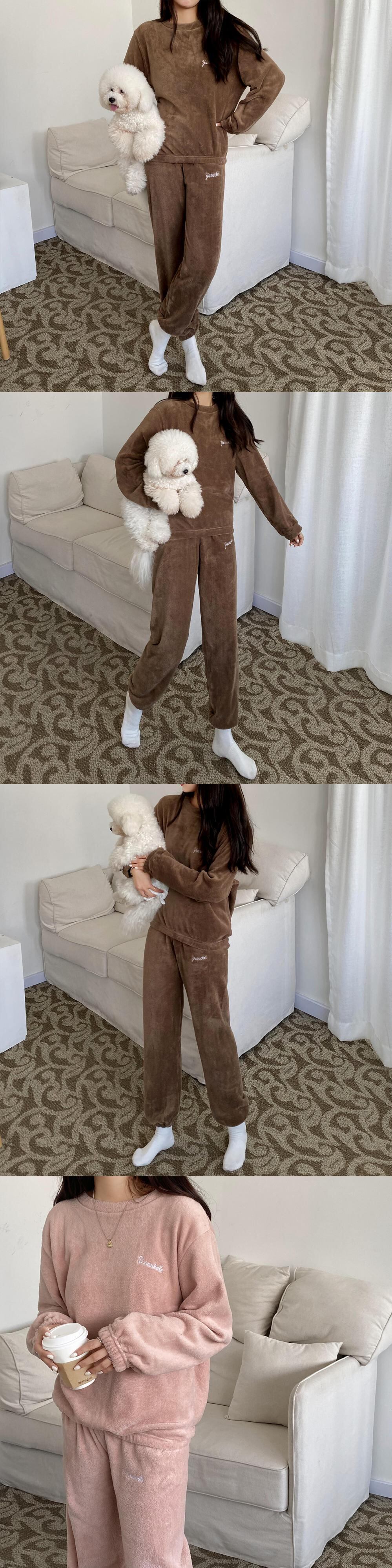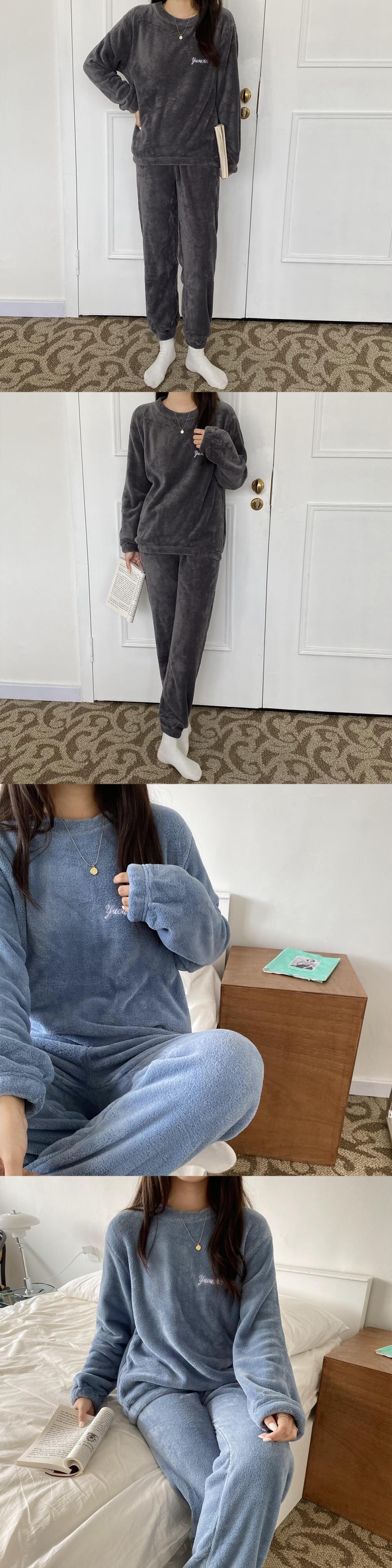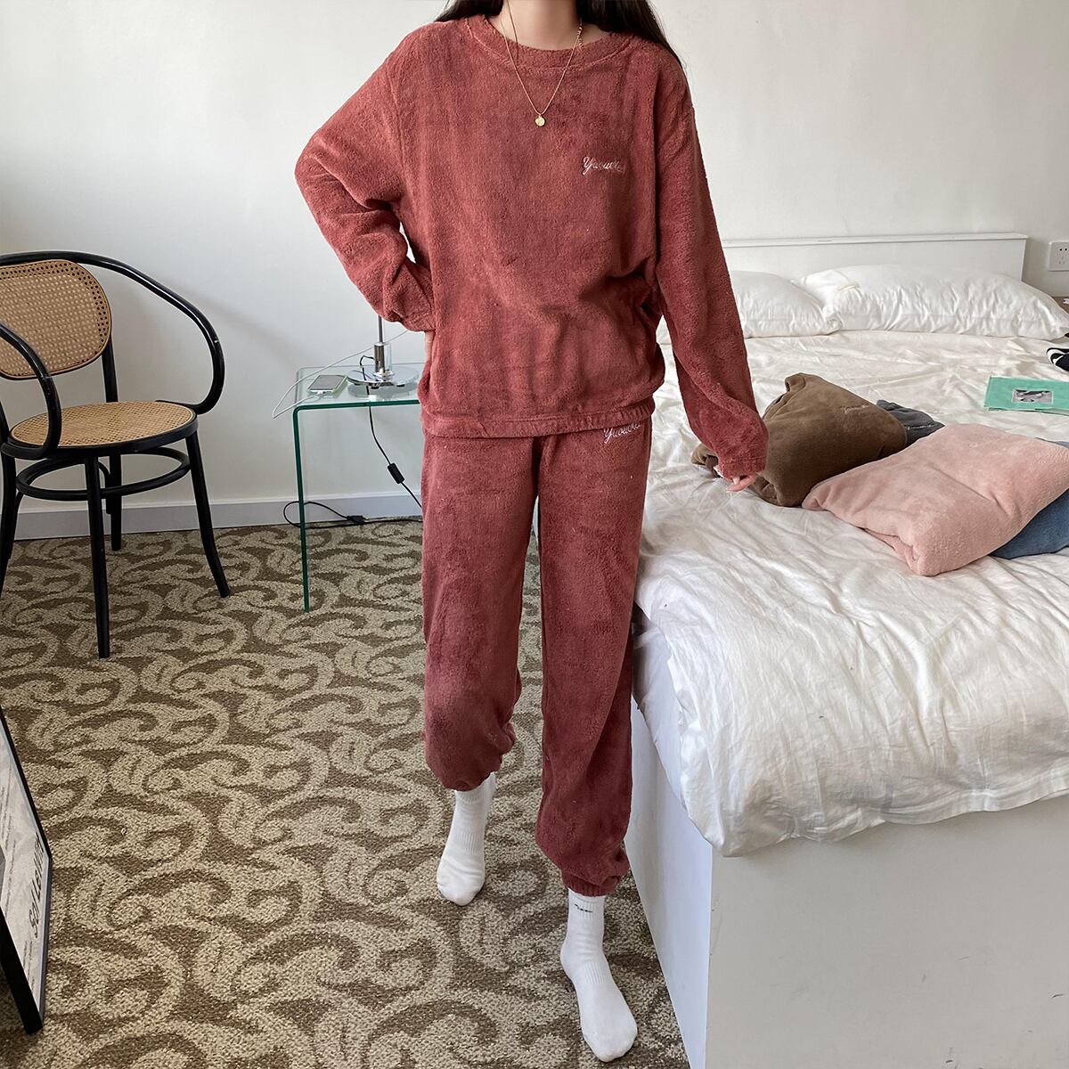 秋冬暖かいフランネルパジャマ刺繍ベルベット厚みルーズパジャマセット若いサンゴベルベットホーム服 オータム 秋物 ウィンター 冬物