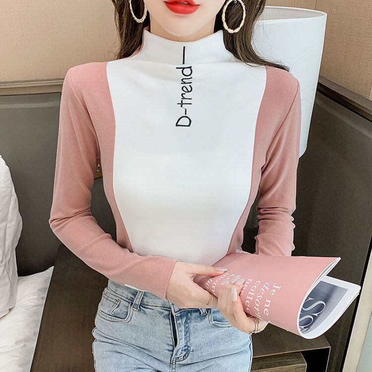 秋冬ベルベット長袖ソリッド Tシャツ原宿タートルネックスリム暖かい厚底 Tシャツホワイトグレートップ ロング かわいい オータム 秋物 ウィンター 冬物 ソリッドカラー