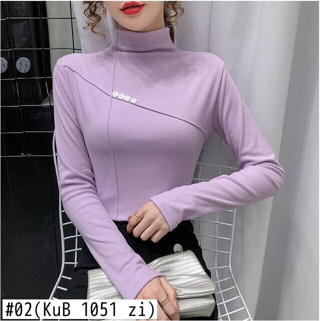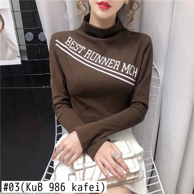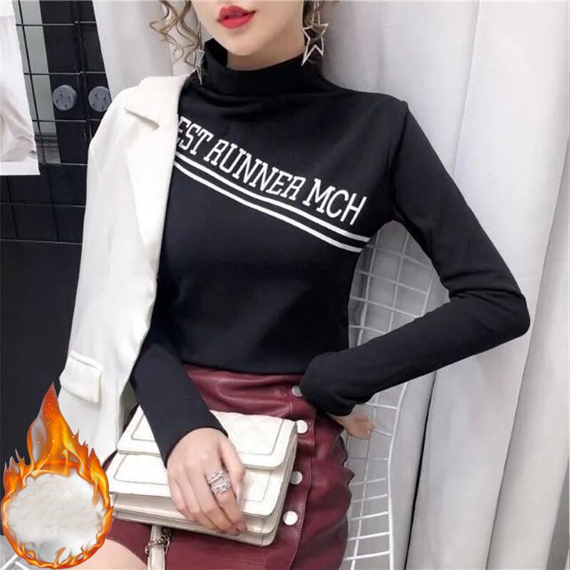 秋冬ベルベット長袖手紙 Tシャツ原宿タートルネックスリム暖かい厚み底 Tシャツ黒トップス ロング ブラック かわいい オータム 秋物 ウィンター 冬物