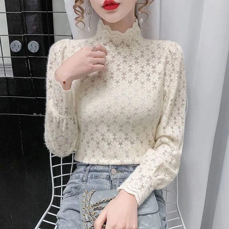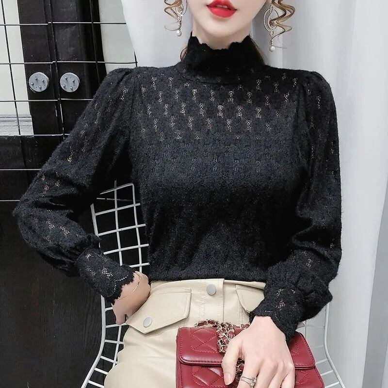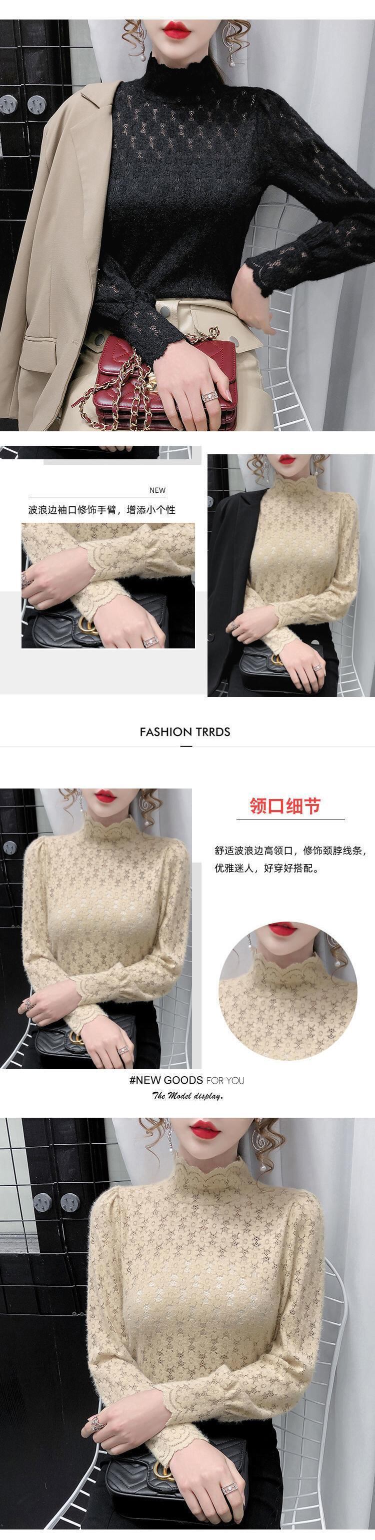 原宿レースシャツ底入れ tシャツ春秋 Tシャツハーフタートルネックスリム長袖セクシー Tシャツトップス ロング かわいい スプリング 春物 オータム 秋物 ソリッドカラー
