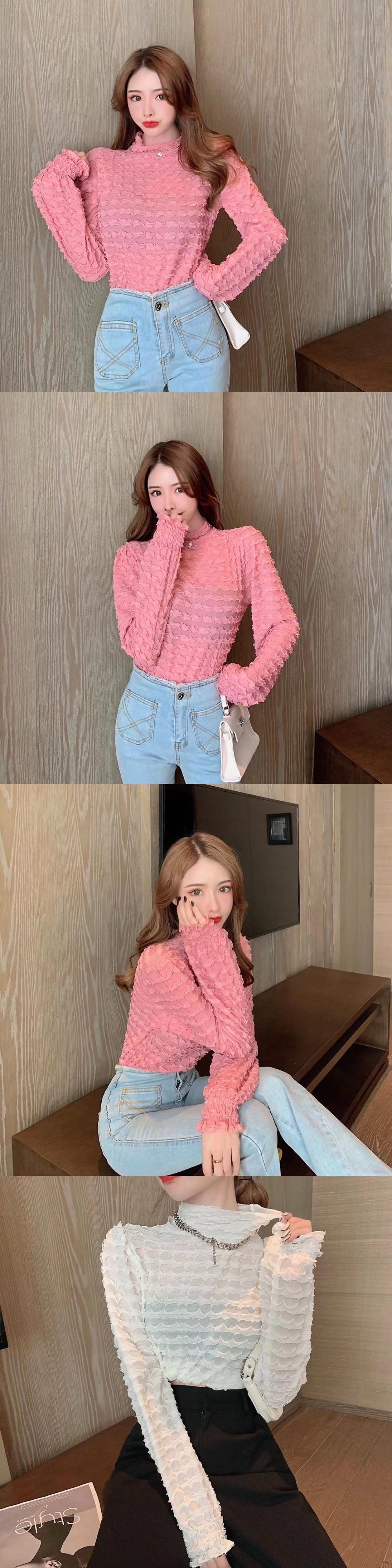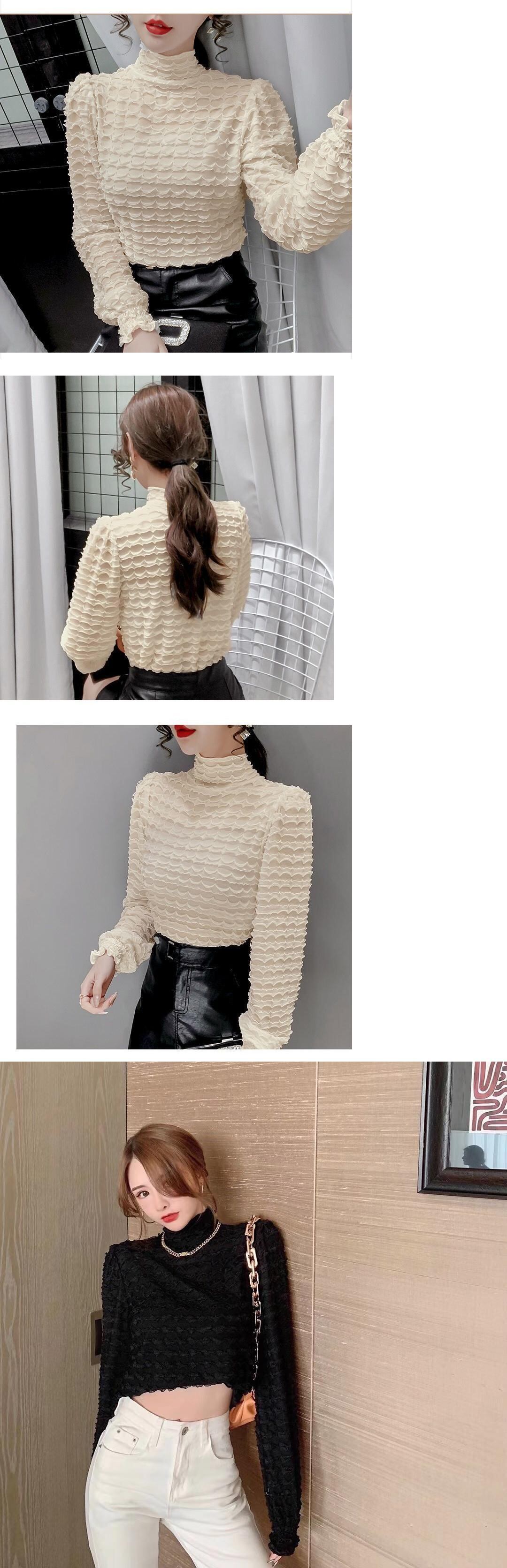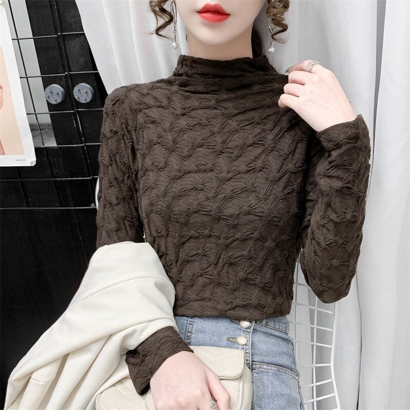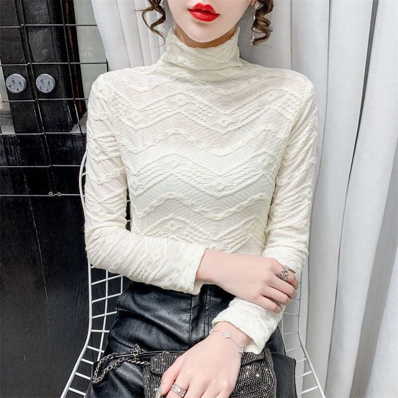ハーフタートルネックスリム長袖黒 Tシャツ原宿レースシャツ底入れ tシャツ春秋 Tシャツトップス ロング ブラック かわいい スプリング 春物 オータム 秋物 ソリッドカラー