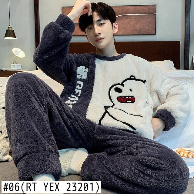 男性冬肥厚サンゴフリースパジャマセット豪華フード付きホームスーツ長袖漫画フランネル 2 個セット暖かいナイトウェア 5XLr ロング ウィンター 冬物