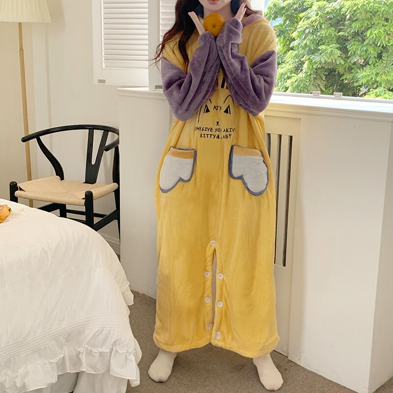 秋冬暖かいフランネルパジャマ漫画フード付き厚みあるワンピースパジャマ緩い暖かいウェアラブルホームウェア服 オータム 秋物 ウィンター 冬物