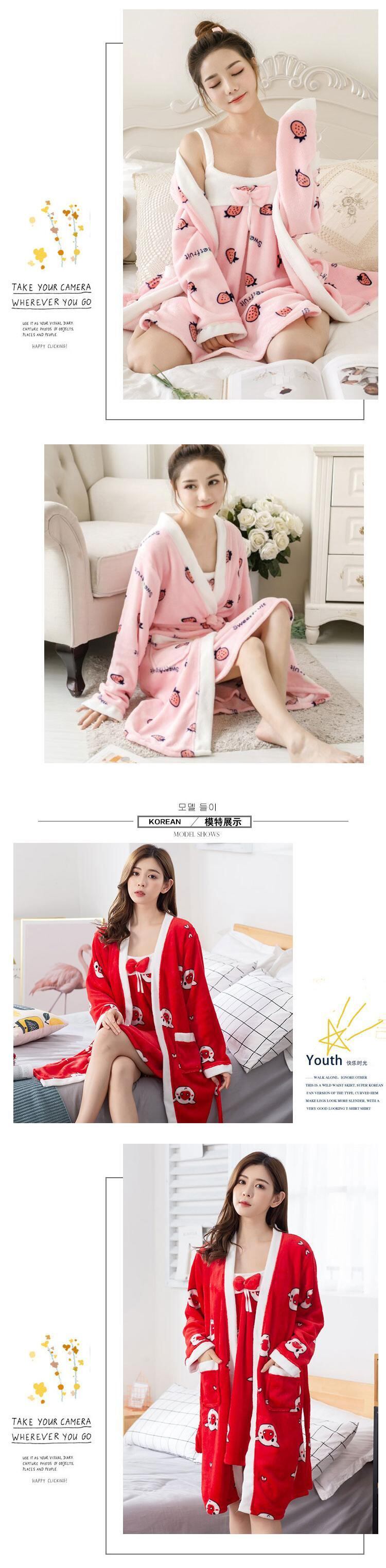 秋冬バスフランネルローブパジャマ暖かいフランネルローブセット花ローブ厚みあるセクシーナイトガウンバスローブパジャマ オータム 秋物 ウィンター 冬物 花柄