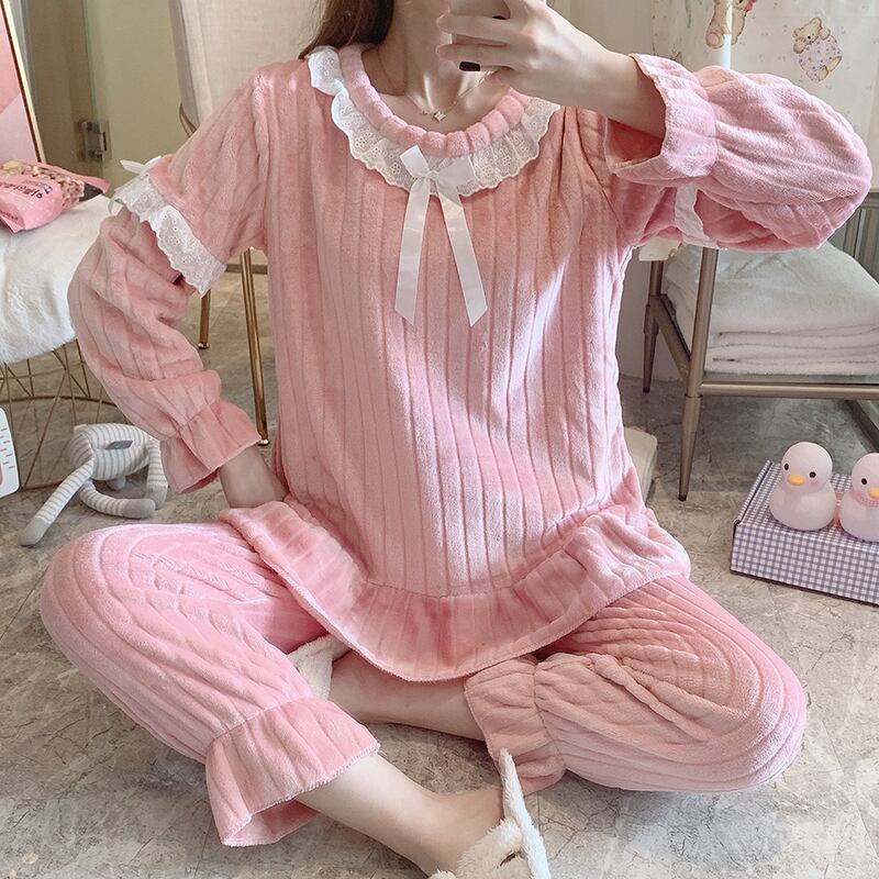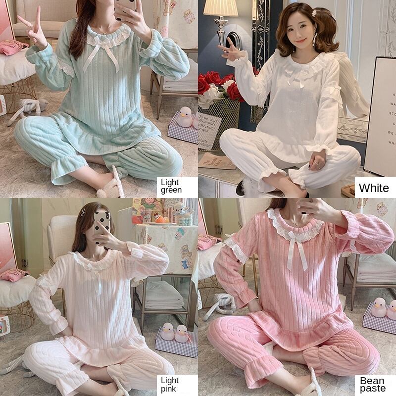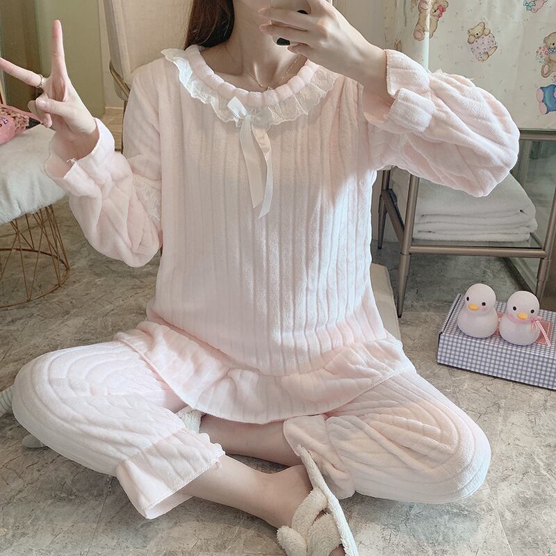 パジャマセット秋冬フランネル暖かいパジャマレース厚みパジャマセットスパースターホーム布パジャマ オータム 秋物 ウィンター 冬物