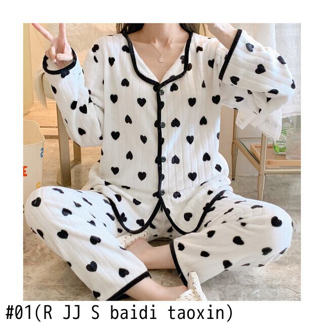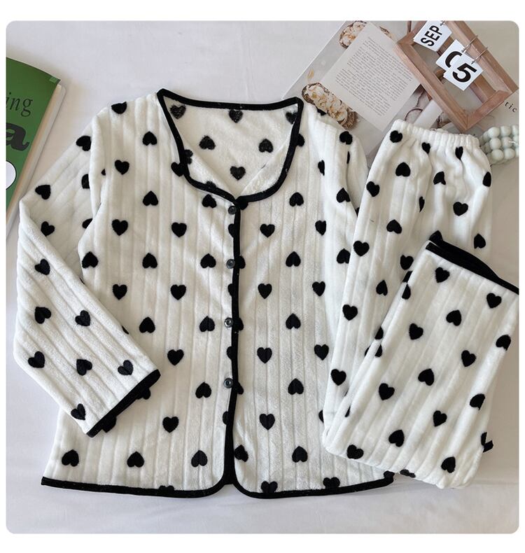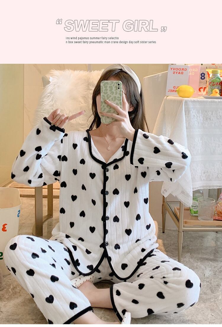 フランネルパジャマセット長袖ズボンターンダウン襟甘い厚いスパースター冬暖かいシングルブレストパジャマ ロング 大人ガーリー スウィート キュート カジュアル ウィンター 冬物