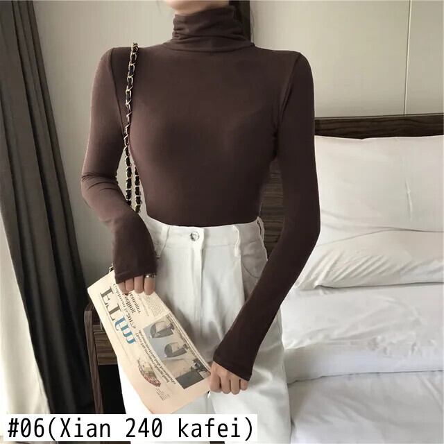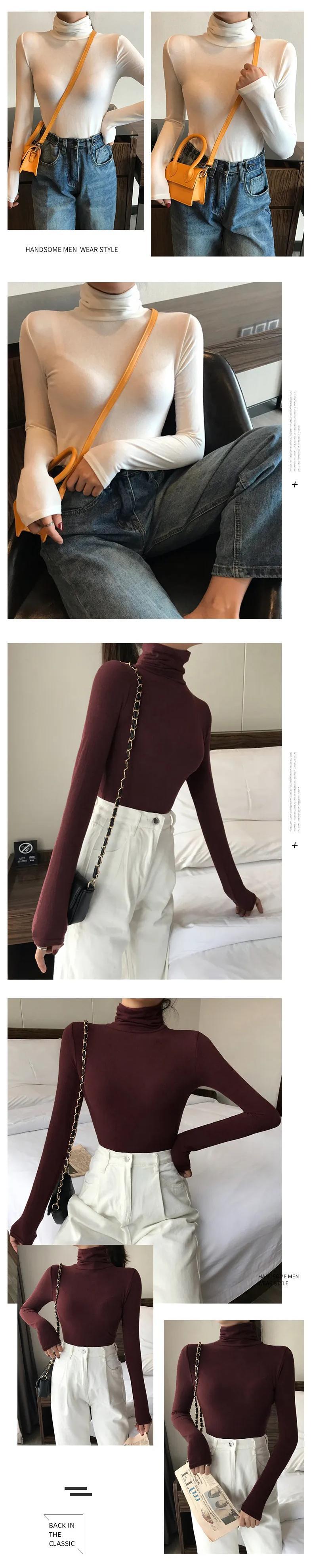 原宿黒白タートルネック Tシャツ秋長袖 Tシャツスリムベーシック Tシャツトップ ロング ホワイト ブラック かわいい オータム 秋物 ソリッドカラー