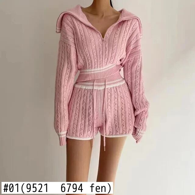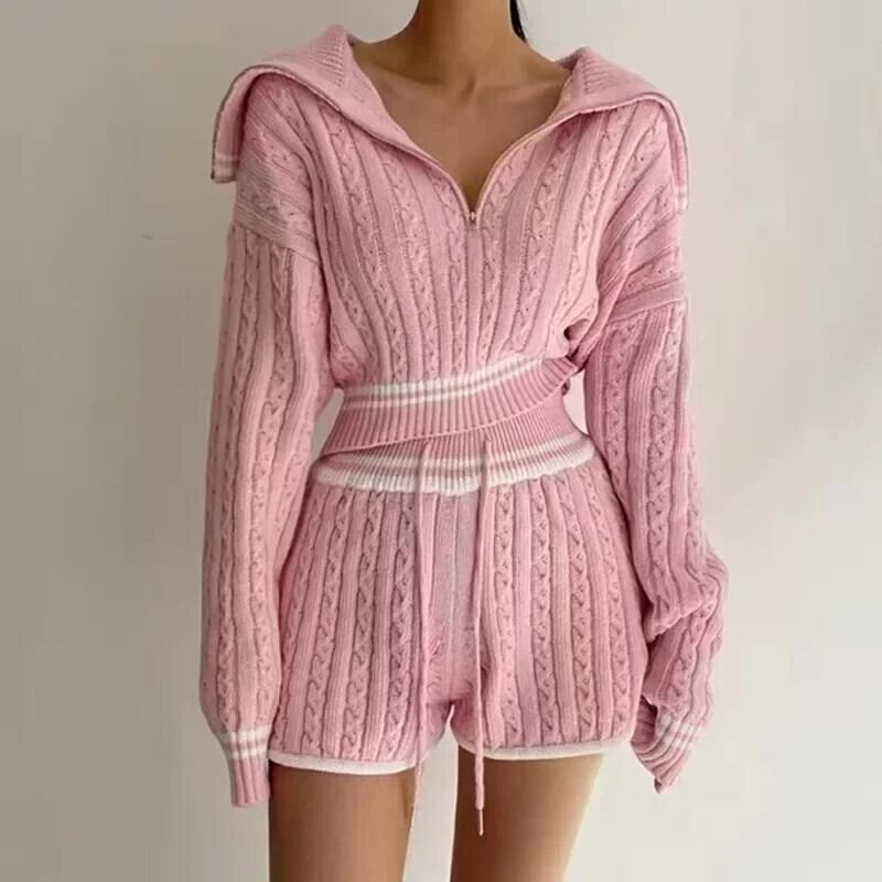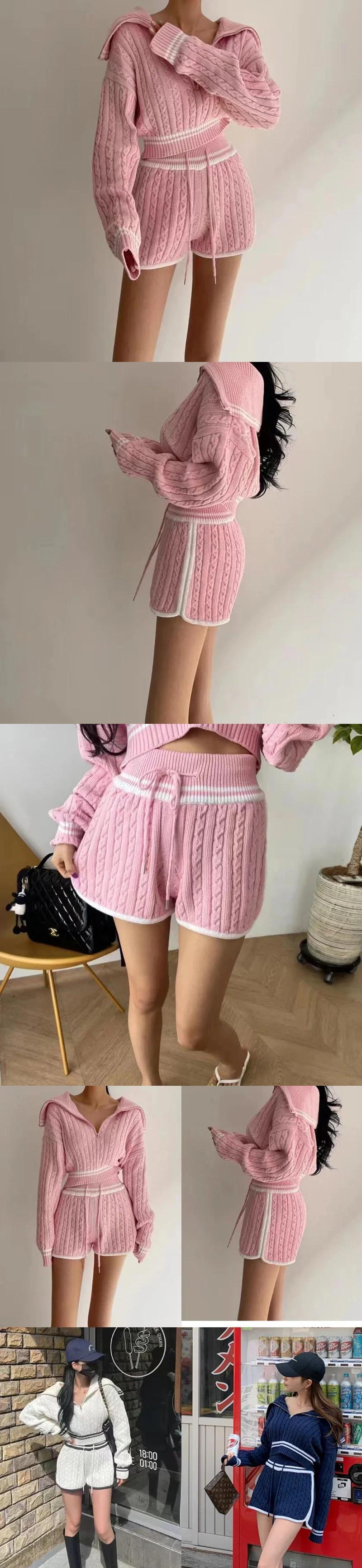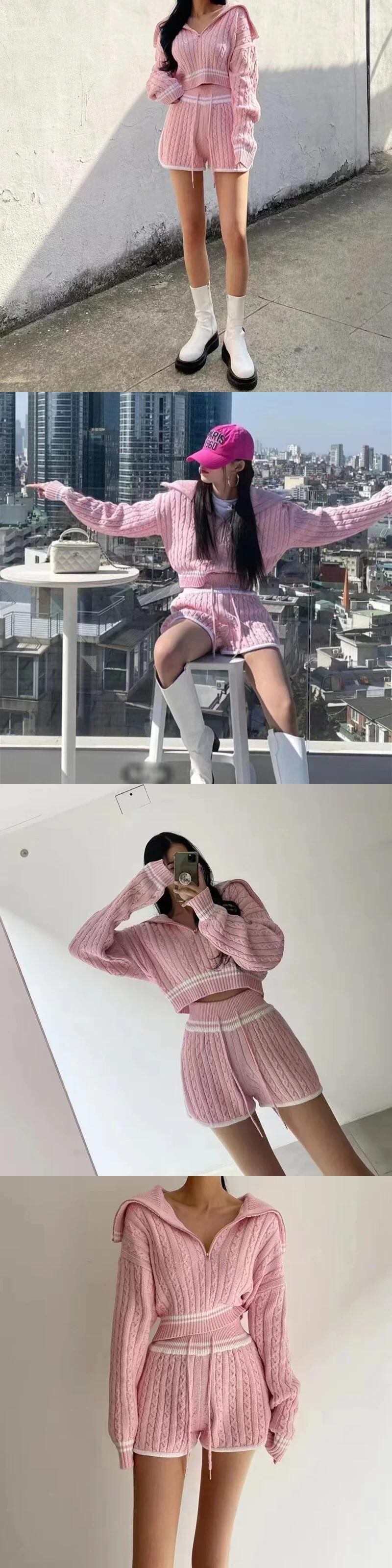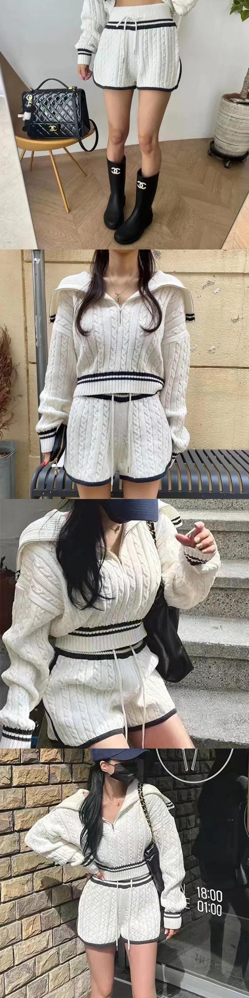 セクシークラブ白スーツ韓国 2 点セットレディース衣装ジッパーショートトップスニットセーターとショーツ 2 点セット ホワイト ブルマー