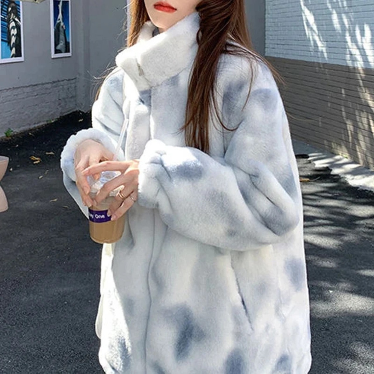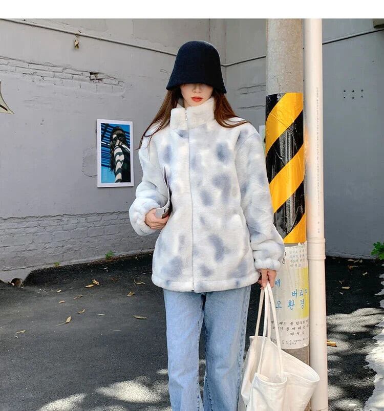 原宿韓国オーバーコートポケット生き抜く秋冬ジッパー絞り染めジャケットコート子羊ウールコートジャケット かわいい オータム 秋物 ウィンター 冬物