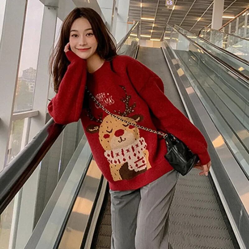 韓国セータークリスマス秋冬ルーズセータープルオーバー長袖ニットジャンパー年グレートップス ロング オータム 秋物 ウィンター 冬物