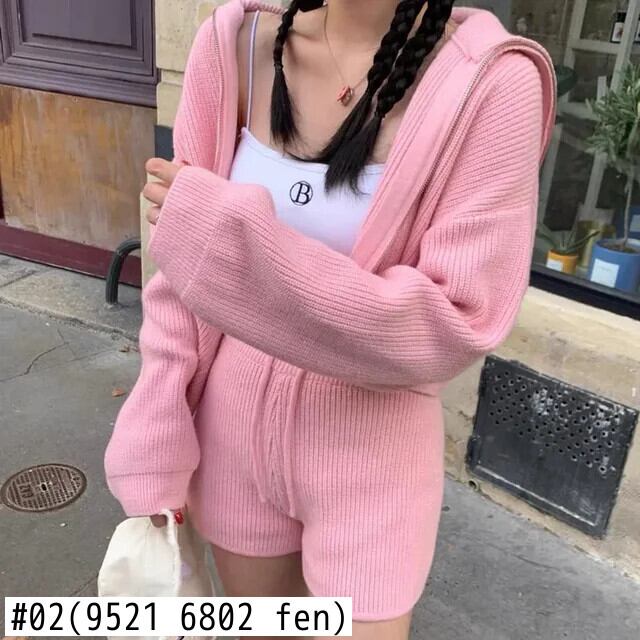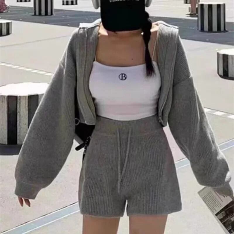 ジッパーショートトップスニットセーターとショーツ 2 点セットセクシークラブグレースーツ韓国 2 点セットレディース衣装 ブルマー