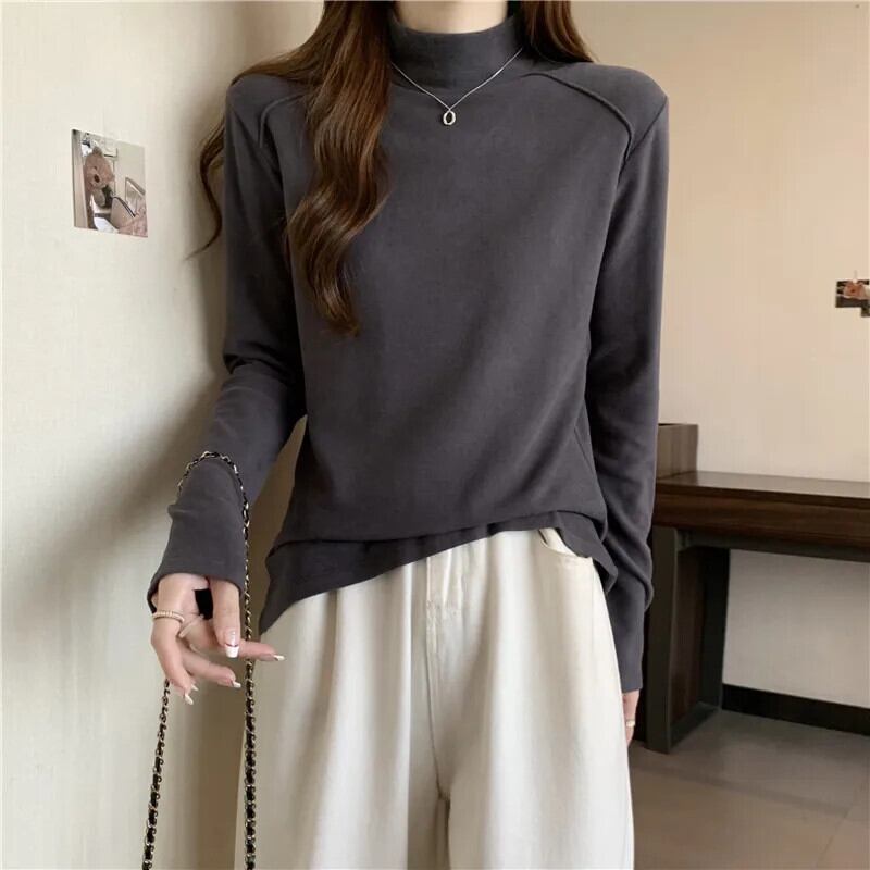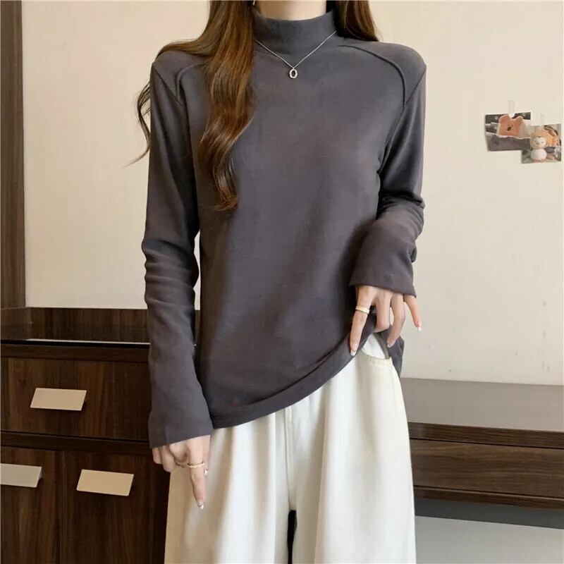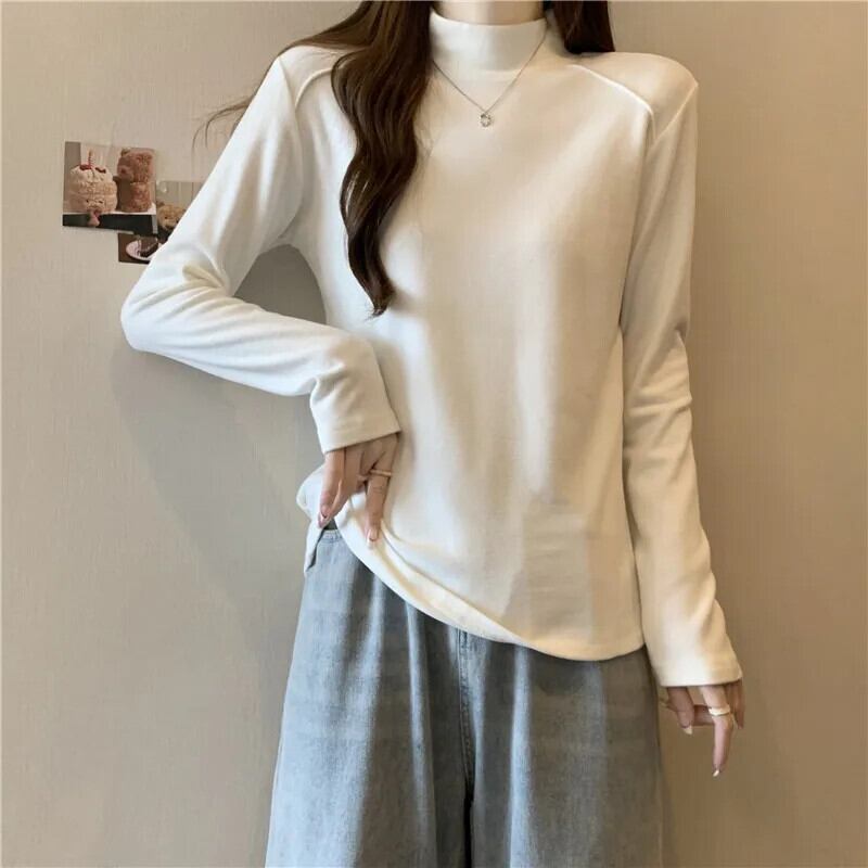 秋冬ベルベット Tシャツ韓国長袖タートルネックスリム底 Tシャツ肥厚ウォームホワイトトップス ロング オータム 秋物 ウィンター 冬物 ソリッドカラー