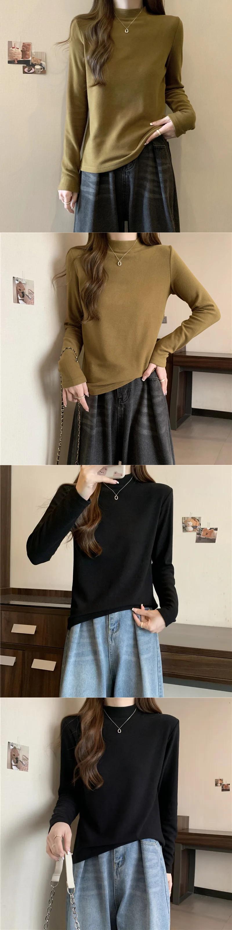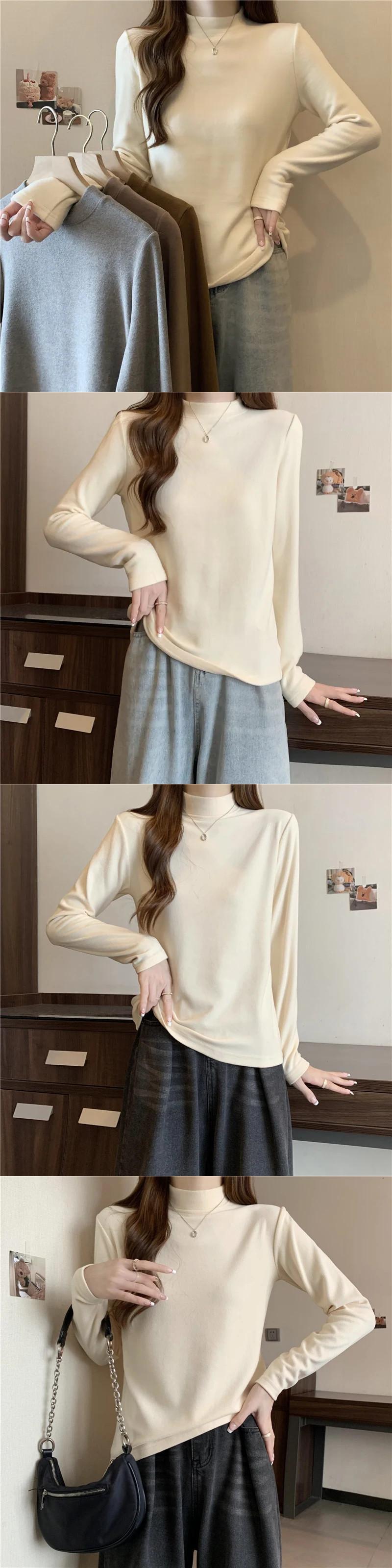 秋冬ベルベット Tシャツ韓国長袖ハーフタートルネックスリム底 Tシャツ厚く暖かい y2k トップス ロング オータム 秋物 ウィンター 冬物 ソリッドカラー