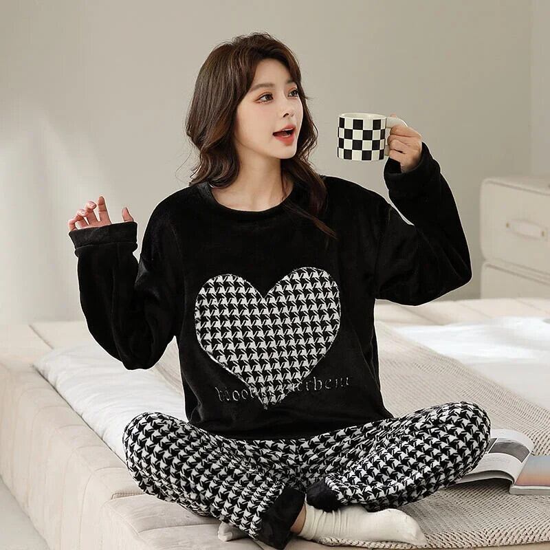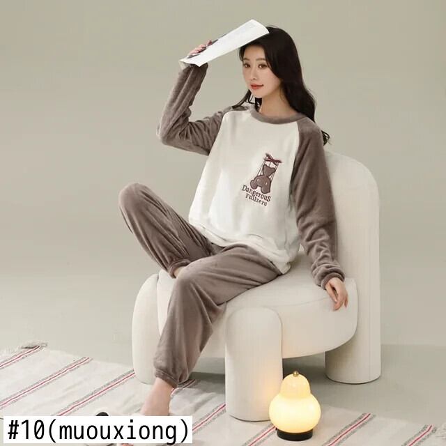 秋冬暖かいフランネルパジャマセットフランネルパジャマセット女子厚いサンゴベルベット長袖漫画パジャマ ロング オータム 秋物 ウィンター 冬物