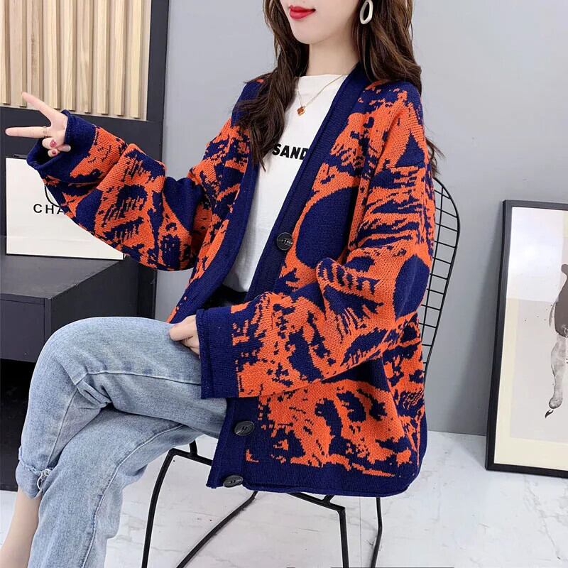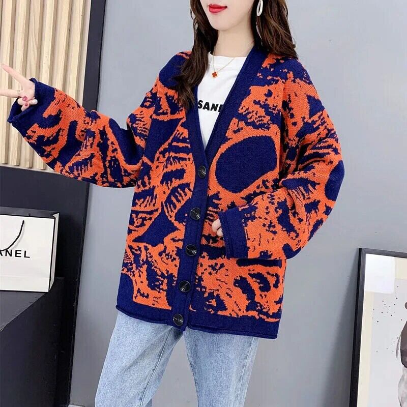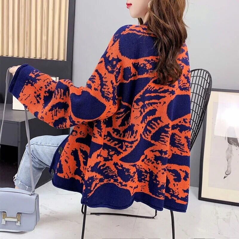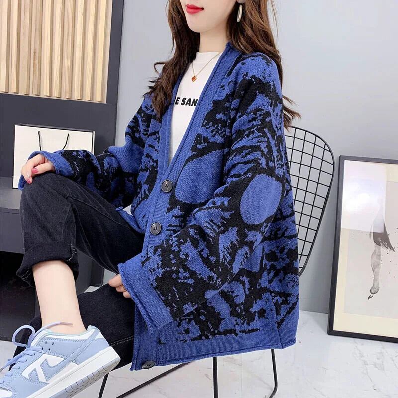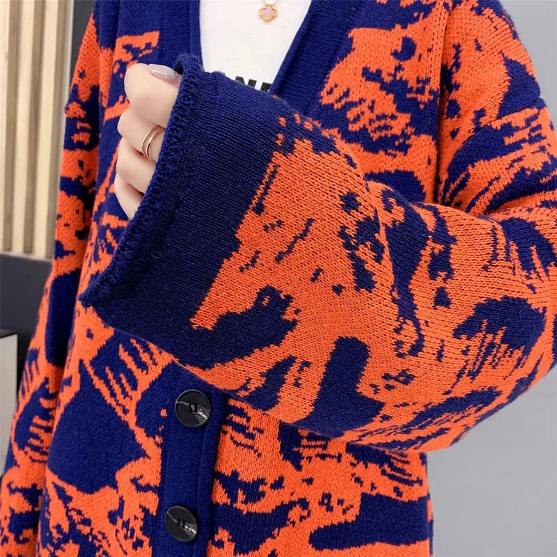 原宿カーディガン絞り染めプリントルーズロングカーディガンコート暖かい秋と冬特大カーディガン かわいい オータム 秋物 ウィンター 冬物