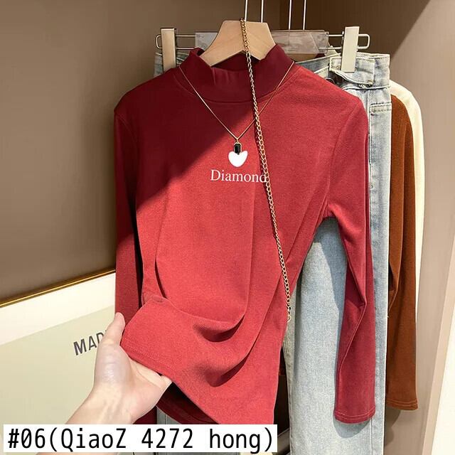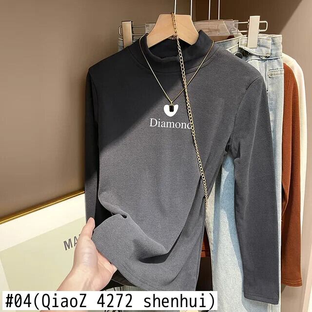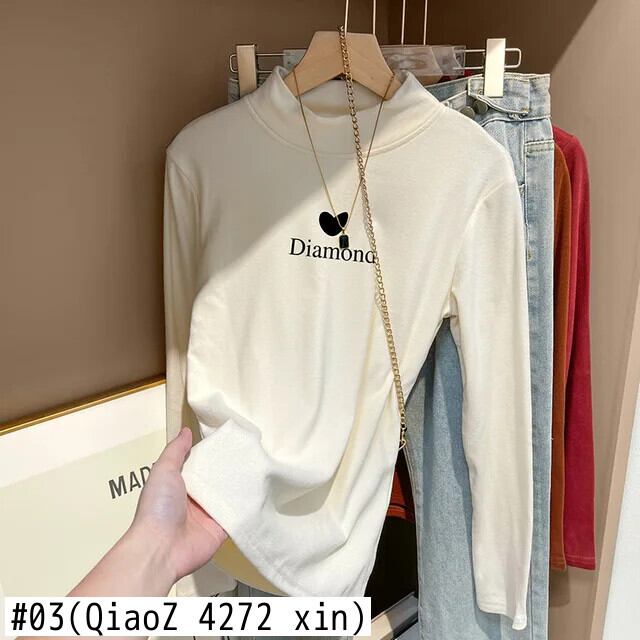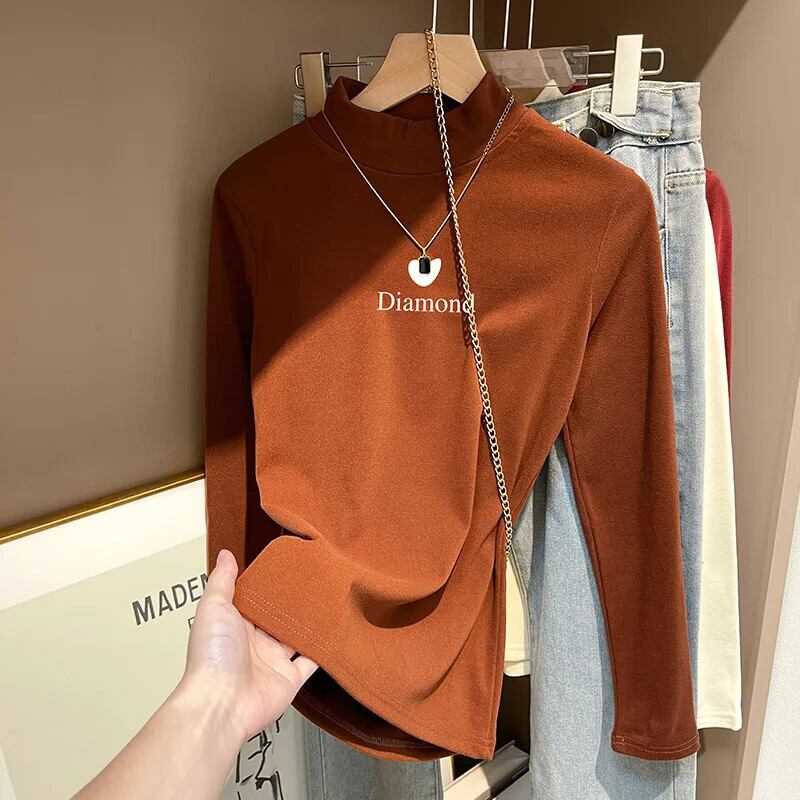 秋冬ベルベット長袖レタープリント Tシャツ原宿ハーフタートルネックスリム厚底 Tシャツ y2k トップ ロング かわいい オータム 秋物 ウィンター 冬物