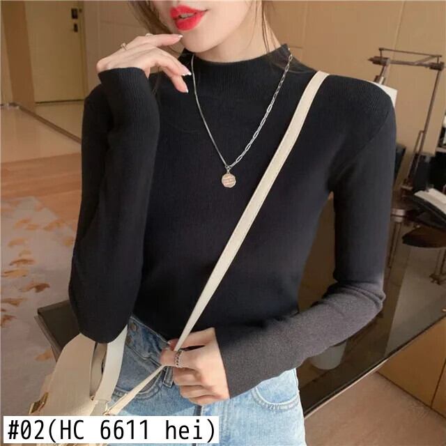 春秋セーター韓国ハーフタートルネックセータープルオーバーファッションカジュアルスリムニット底ジャンパートップス スプリング 春物 オータム 秋物 ソリッドカラー