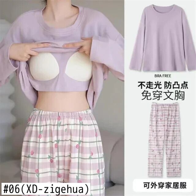 秋レジャー弾性ウエスト女子パジャマパジャマセット胸パッドストライプ長袖ソフトスパースターレストホーム ロング エラスティック 伸縮 オータム 秋物