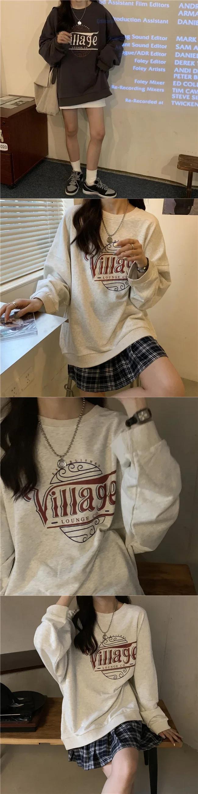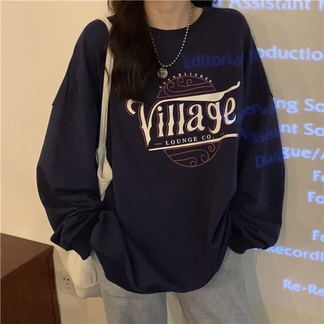 薄いスウェットイン長袖特大パーカー原宿秋 Kpop レタープリントスウェットシャツ ロング かわいい オータム 秋物