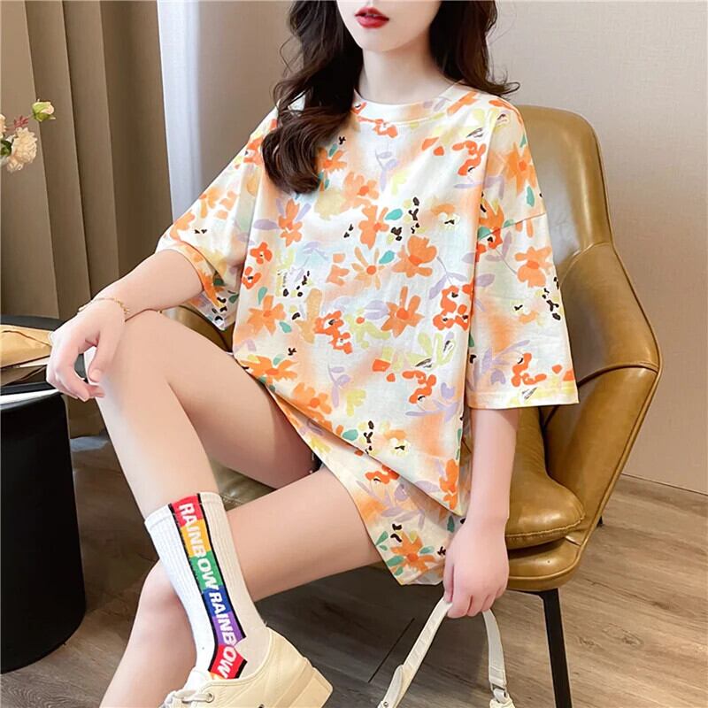 2024 夏特大 Tシャツ韓国スタイルグリーン印刷グラフィック y2k トップスロング Tシャツ原宿友人かわいい 大人ガーリー サマー 夏物