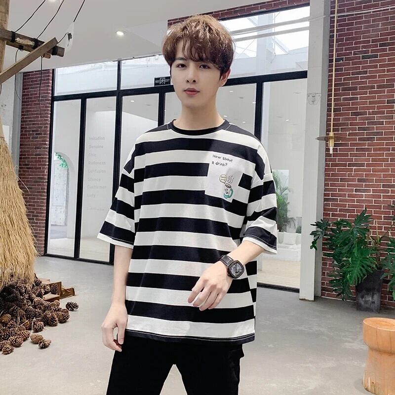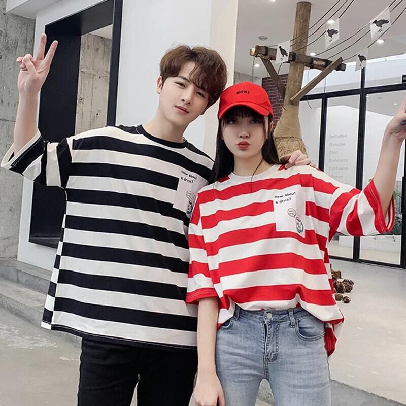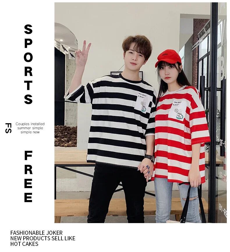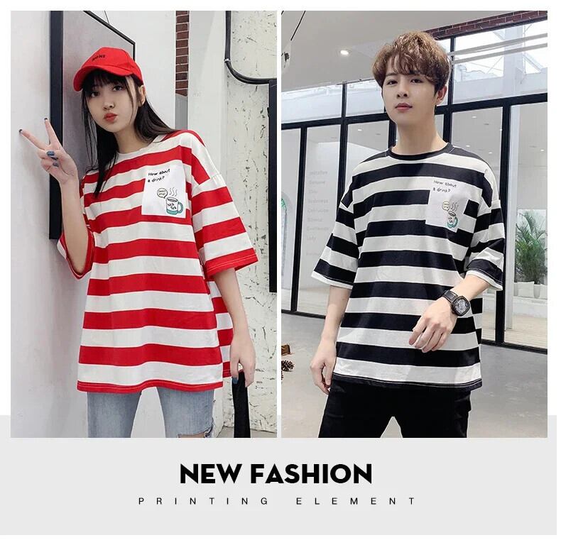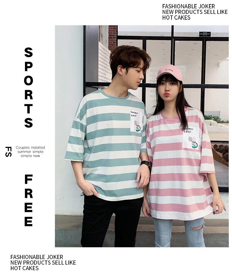 半袖男性 y2k トップ原宿男性ストライプ特大 Tシャツカップルストリート Tシャツユニセックス ショート ハーフスリーブ かわいい