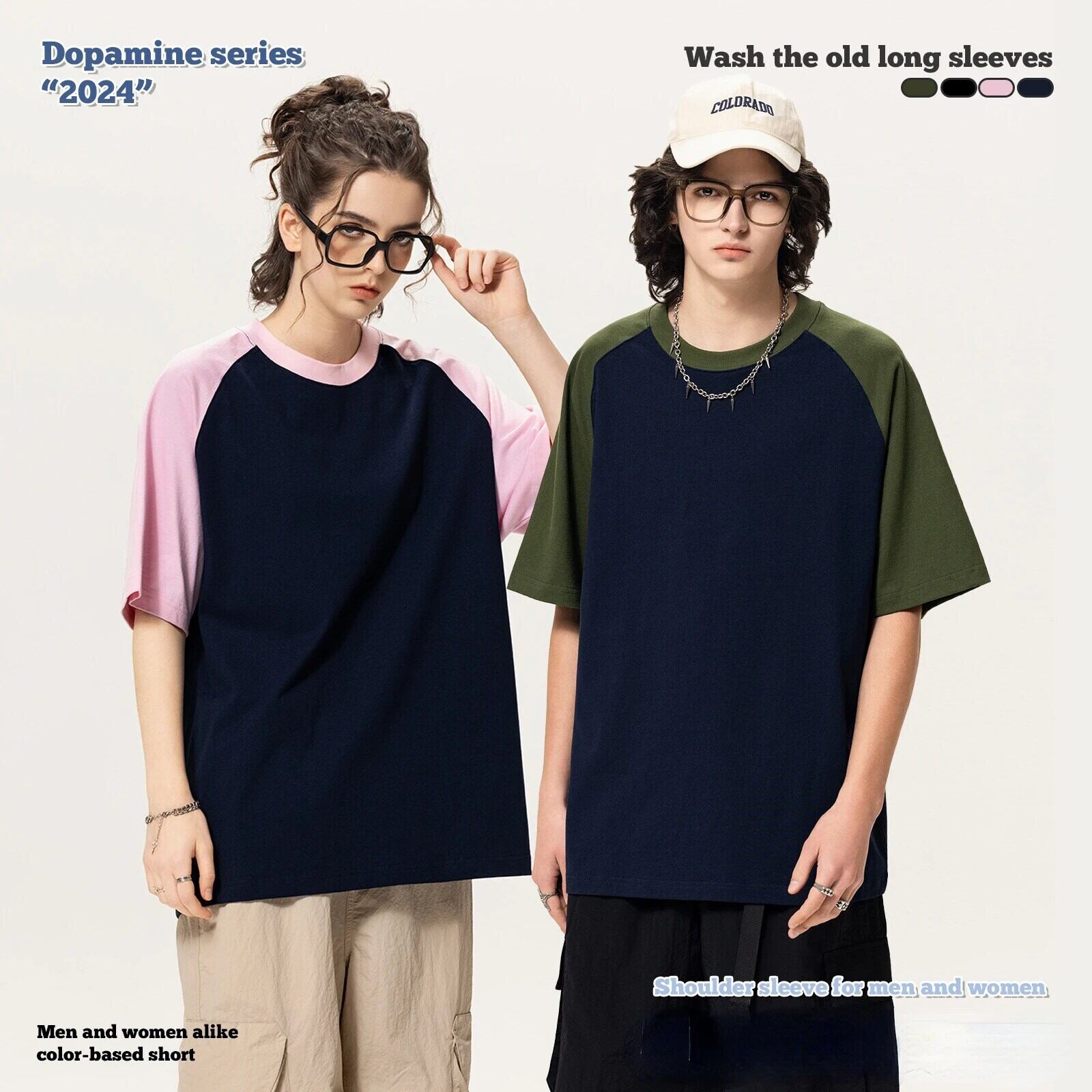 ストリート tシャツ男性夏カラーブロック純粋綿 Tシャツ男性原宿特大半袖ユニセックス y2k トップス ショート コットン ハーフスリーブ かわいい サマー 夏物 ピュア