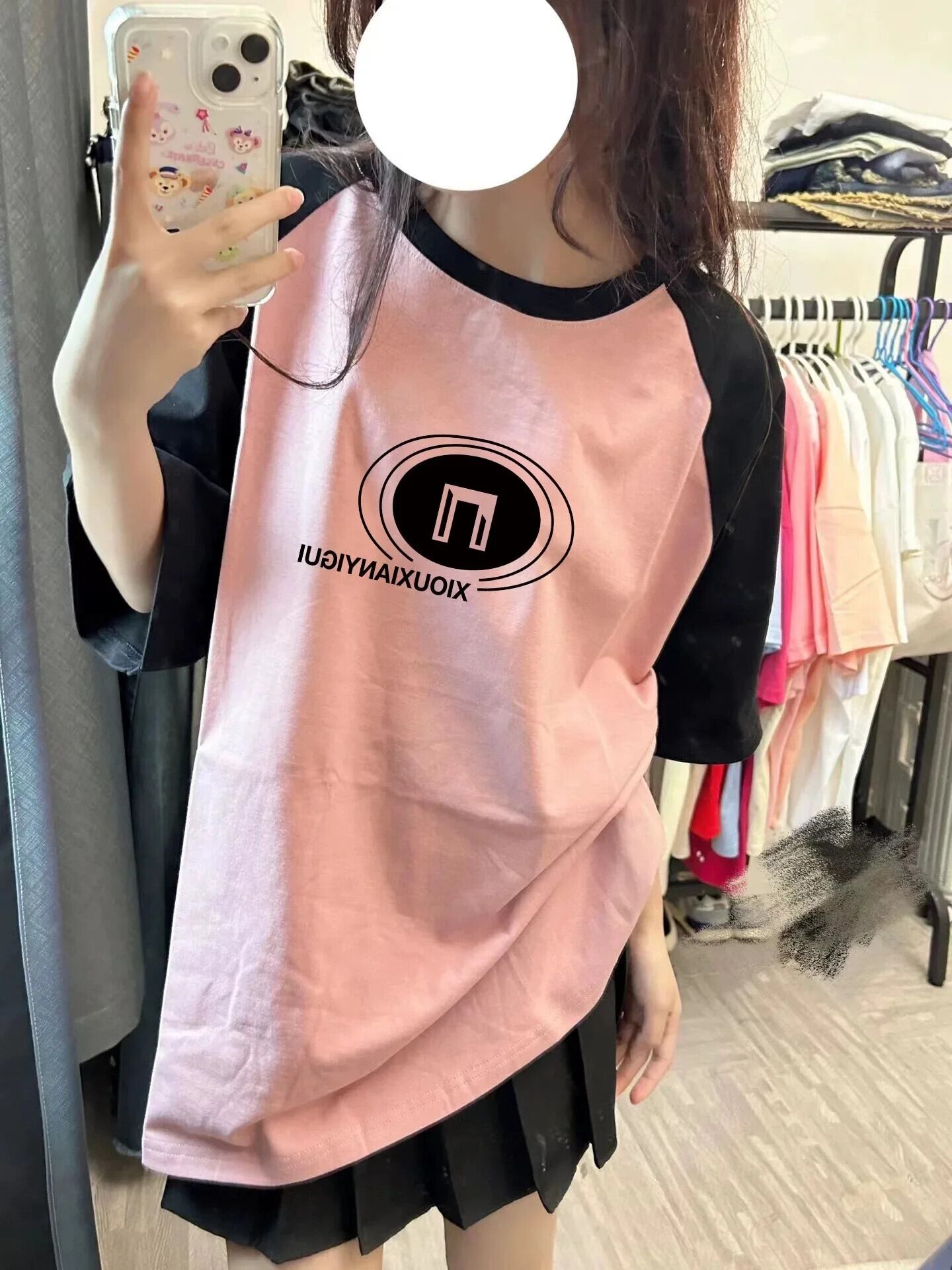 2024 夏ストリート 90 s 半袖 Tシャツ原宿ピンクプルオーバートップス特大レトロパッチワークプリント Tシャツ ショート ハーフスリーブ かわいい サマー 夏物