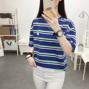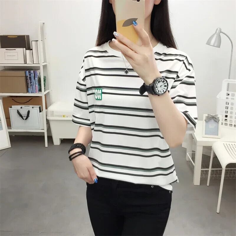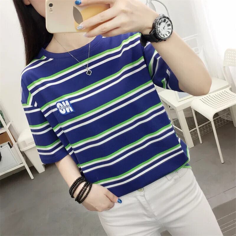 トップス白青 Tシャツ原宿夏新ストライプグラフィック Tシャツストリート Tシャツ y2k トップ ホワイト ブルー かわいい サマー 夏物