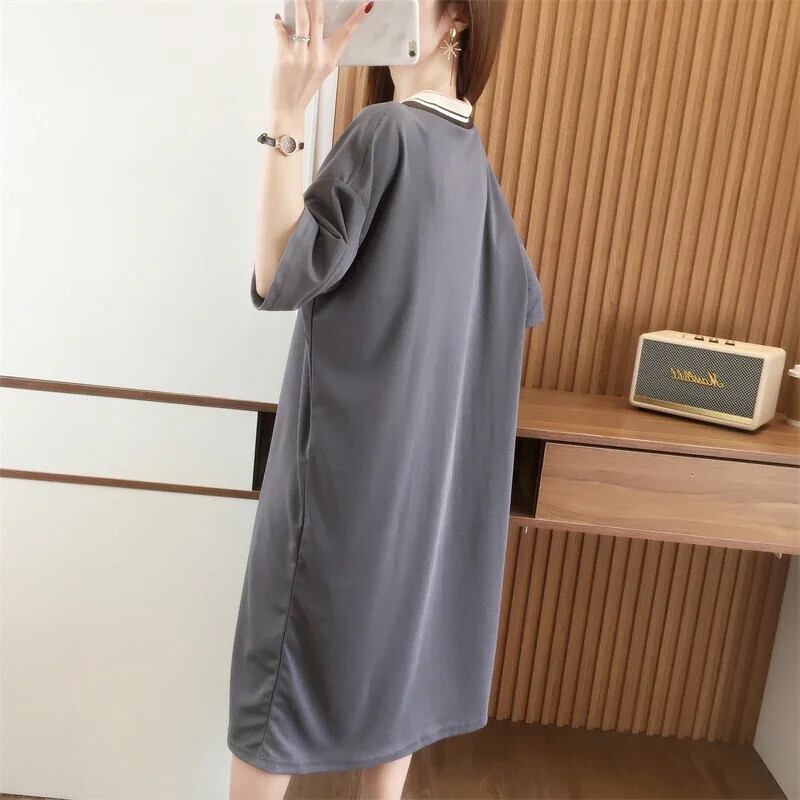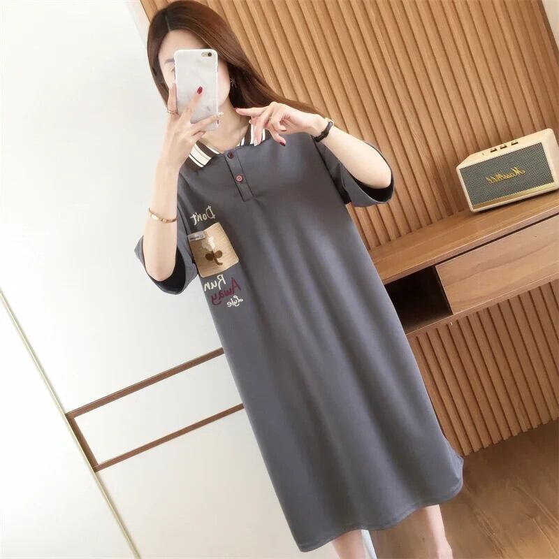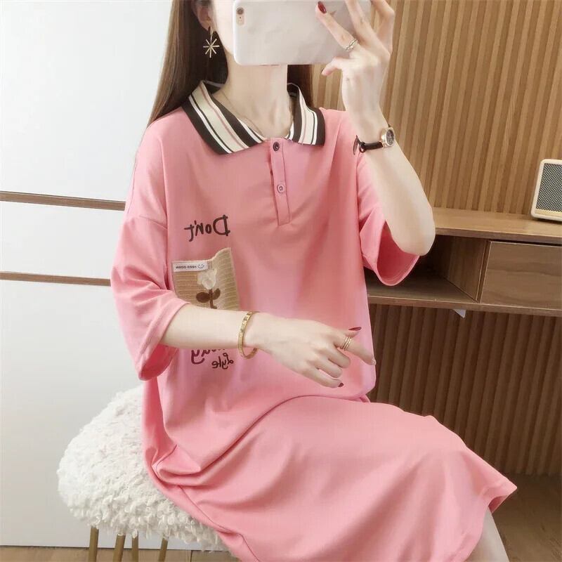 原宿韓国特大ロングドレスファッションフラワープリントカジュアルドレス半袖コットン夏 Y2K マキシサンドレス ショート ハーフスリーブ かわいい サマー 夏物 フラワーデザイン