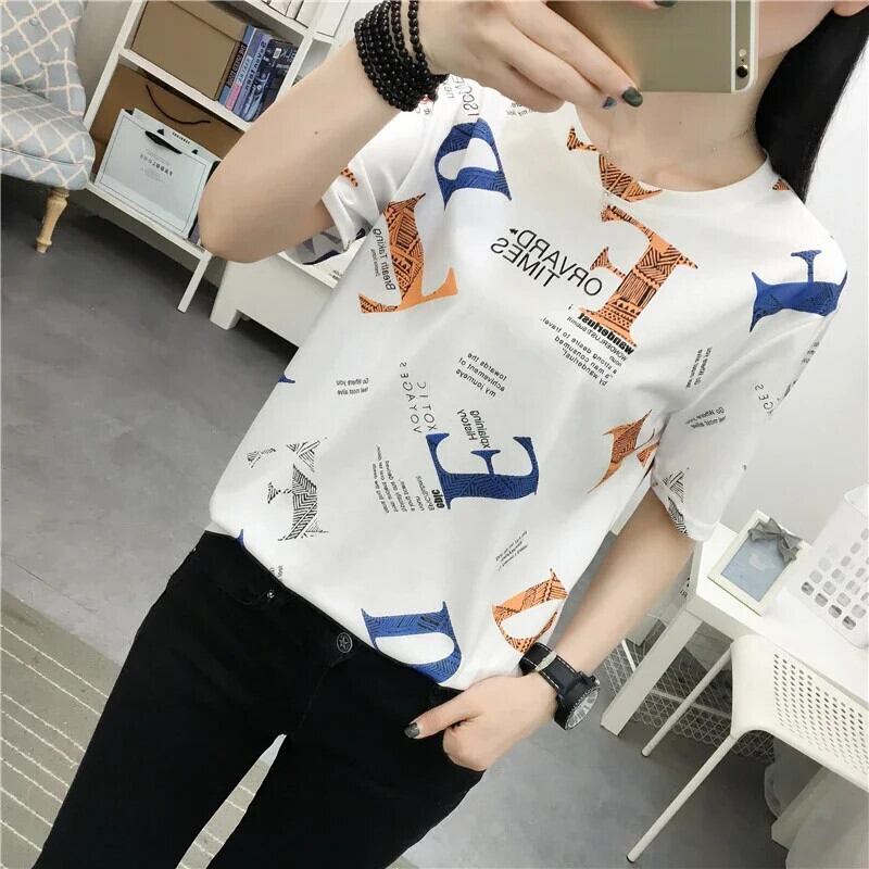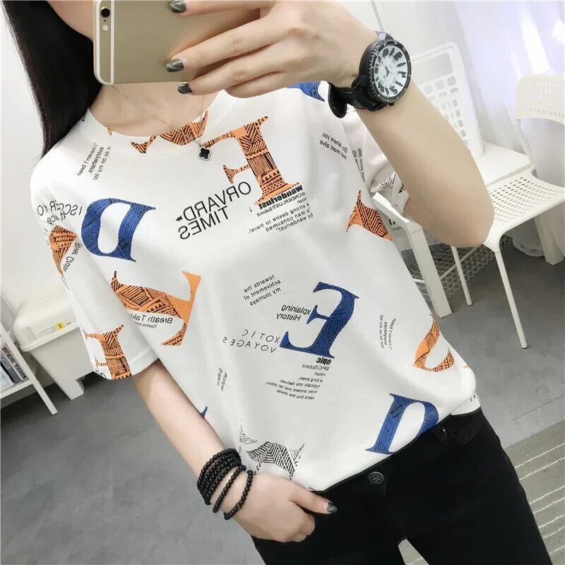 夏半袖 Tシャツレタープリント Tシャツトップ原宿グラフィック Tシャツ学生トップス ショート ハーフスリーブ かわいい サマー 夏物